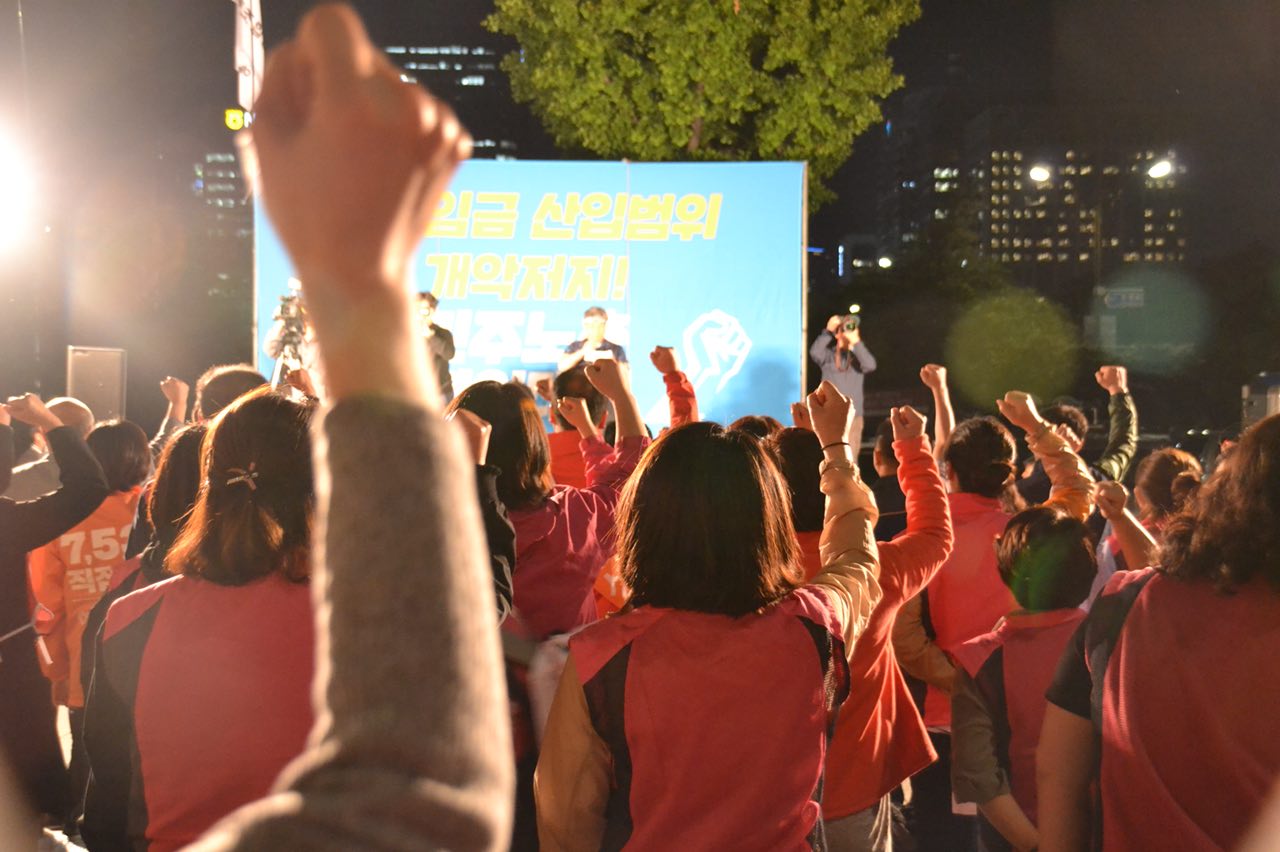 우리노조의 적극적 밤샘투쟁이 있었지만 결국 집권여당 다수의 의견으로 최저임금삭감안이 통과되었습니다.