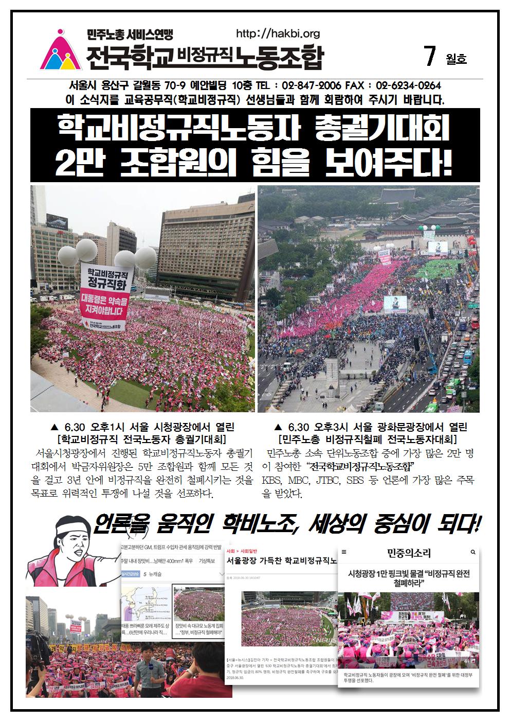 6.30 학교비정규직노동자 총궐기 보고 "학교비정규직노동자 총궐기대회 2만 조합원의 힘을 보여주다"