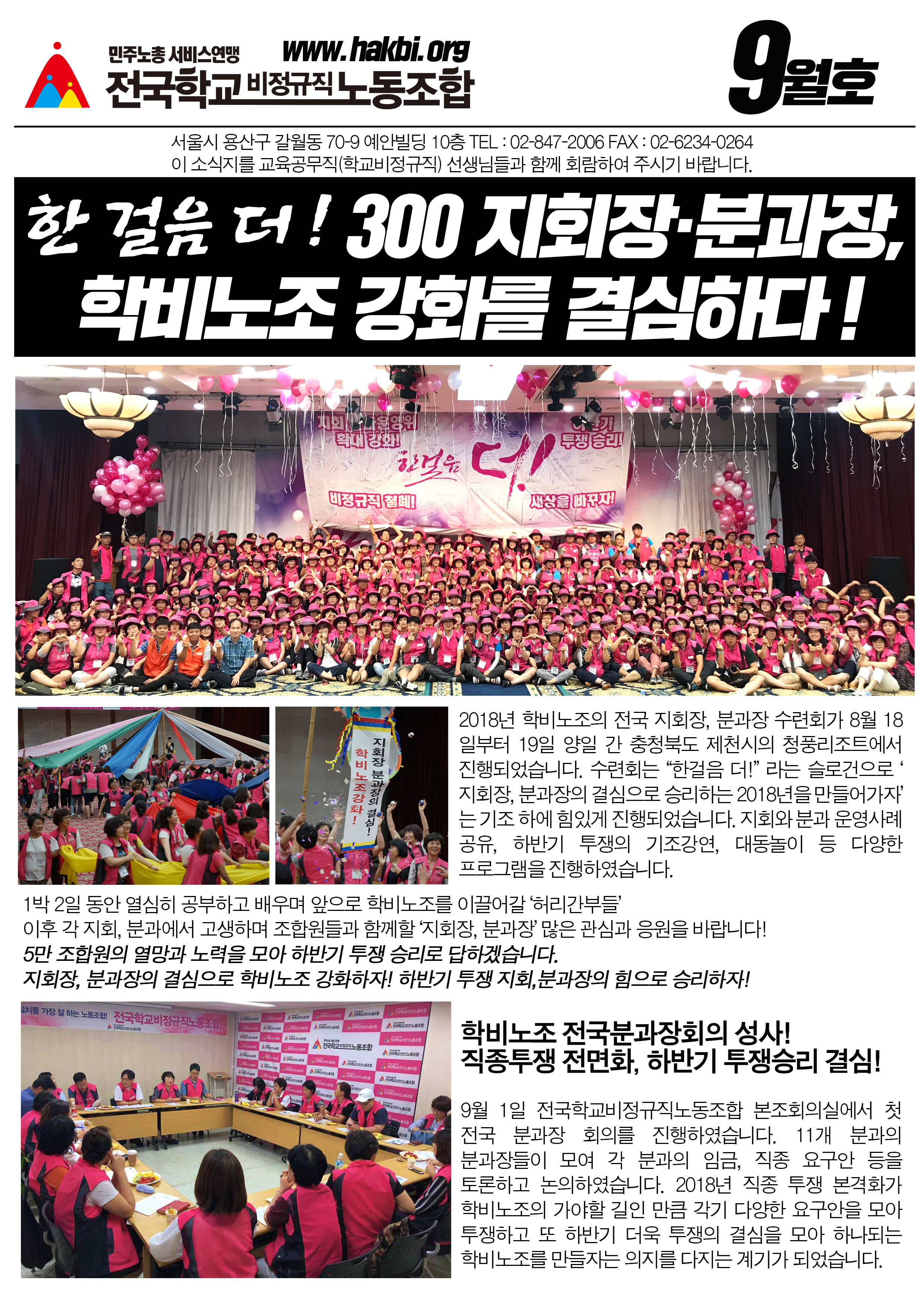 [9월 팩스소식지] 300 지회장・분과장, 학비노조 강화를 결심하다!