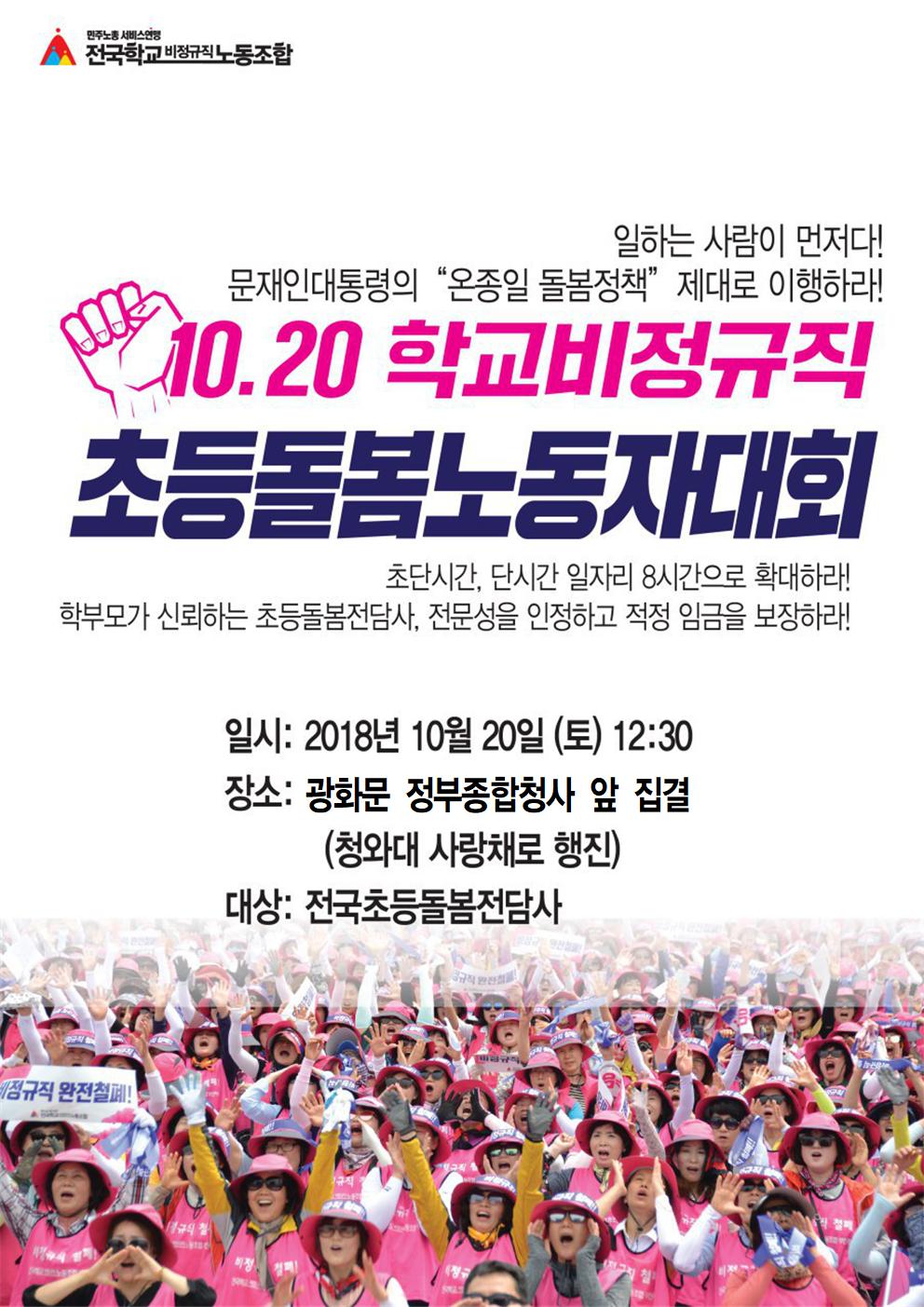 10.20 학교비정규직 초등돌봄노동자대회!!! 꼬옥~ 함께 해야 합니다.