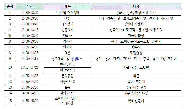 ·장소: 광화문 정부종합청사앞 집결(청와대 사랑채로 행진)