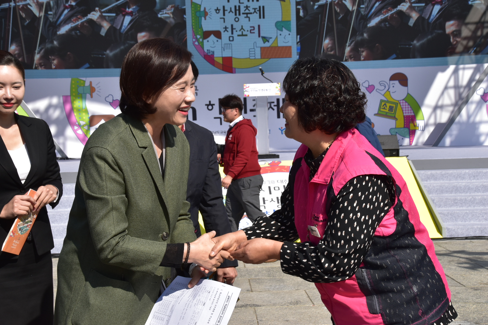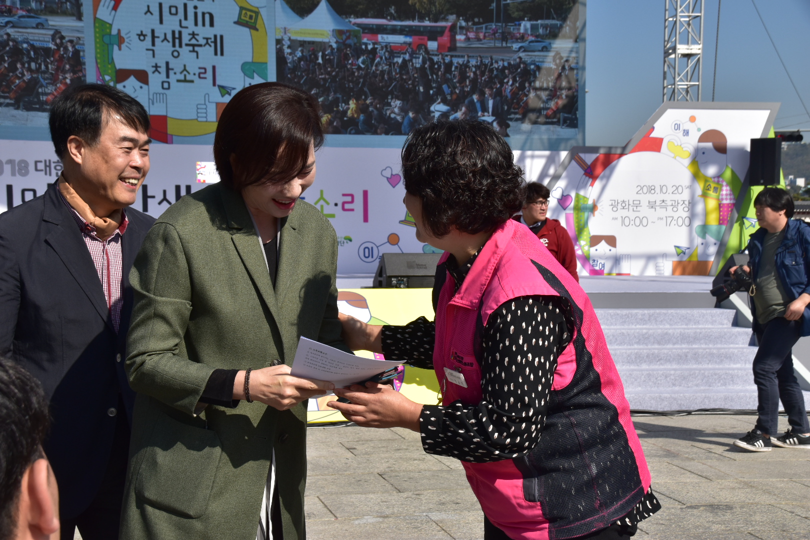 현재 광화문에서 2018 참소리 학생축제가 열리고 있는 가운데, 박금자 전국학고비정규직노동조합 위원장이 참석하여, 교육부가 집단교섭에 책임지고 나서서 학교비정규직 정규직화에 이행해야한다는 서한을 유은혜장관에게 전달했습니다.