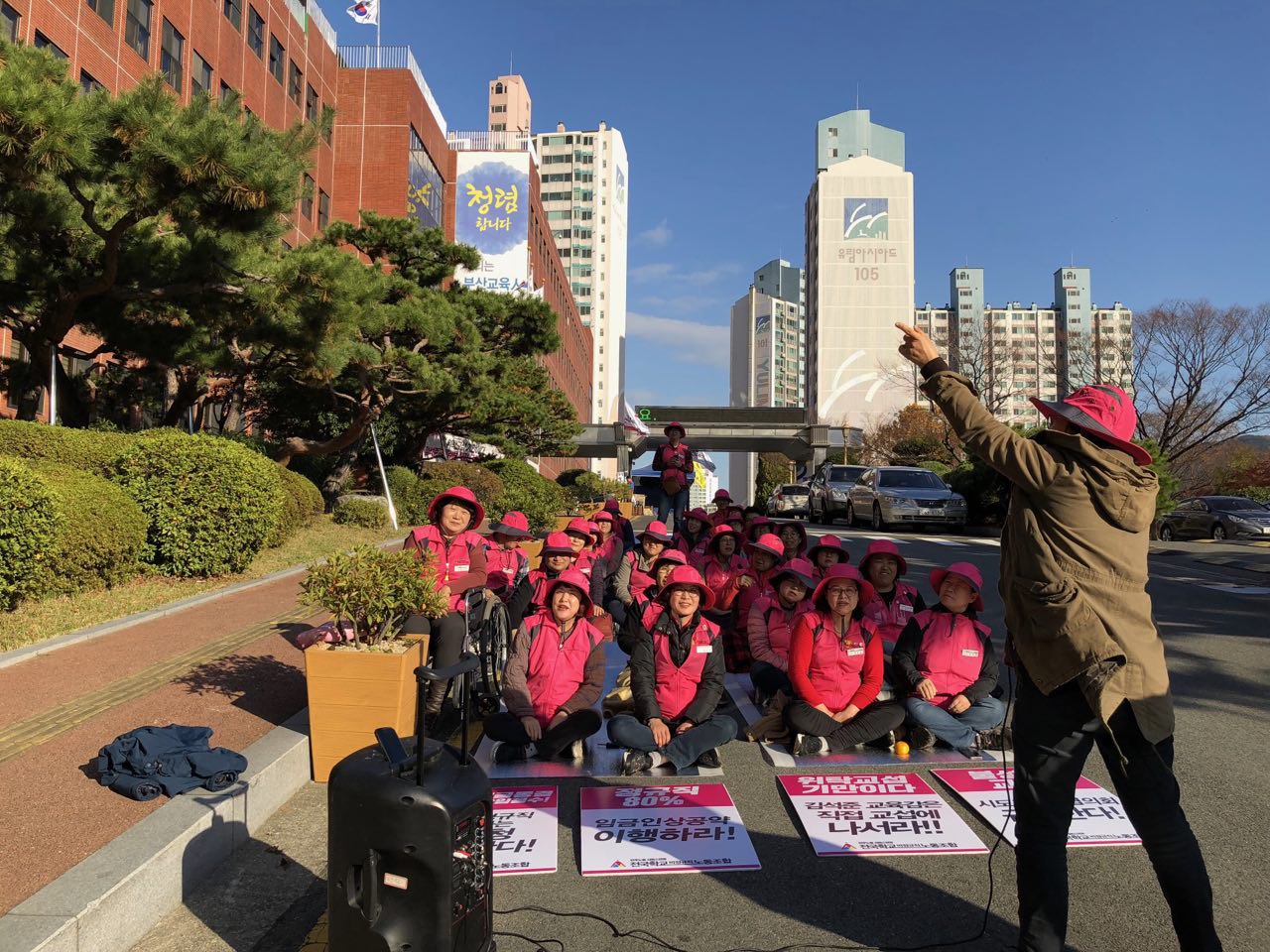 "부끄럽다!! 꼴통! 가짜 진보 부산교육감! 정신차리고 직접교섭해라!"
