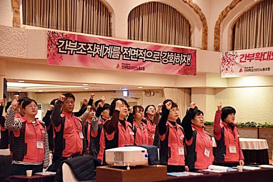 전국학교비정규직노동조합에서 상근하고 있는 간부들이 2월 14일부터 15일까지 1박 2일간 온양관광호텔에서 2019년 전국 상근간부수련회를 개최하였다.