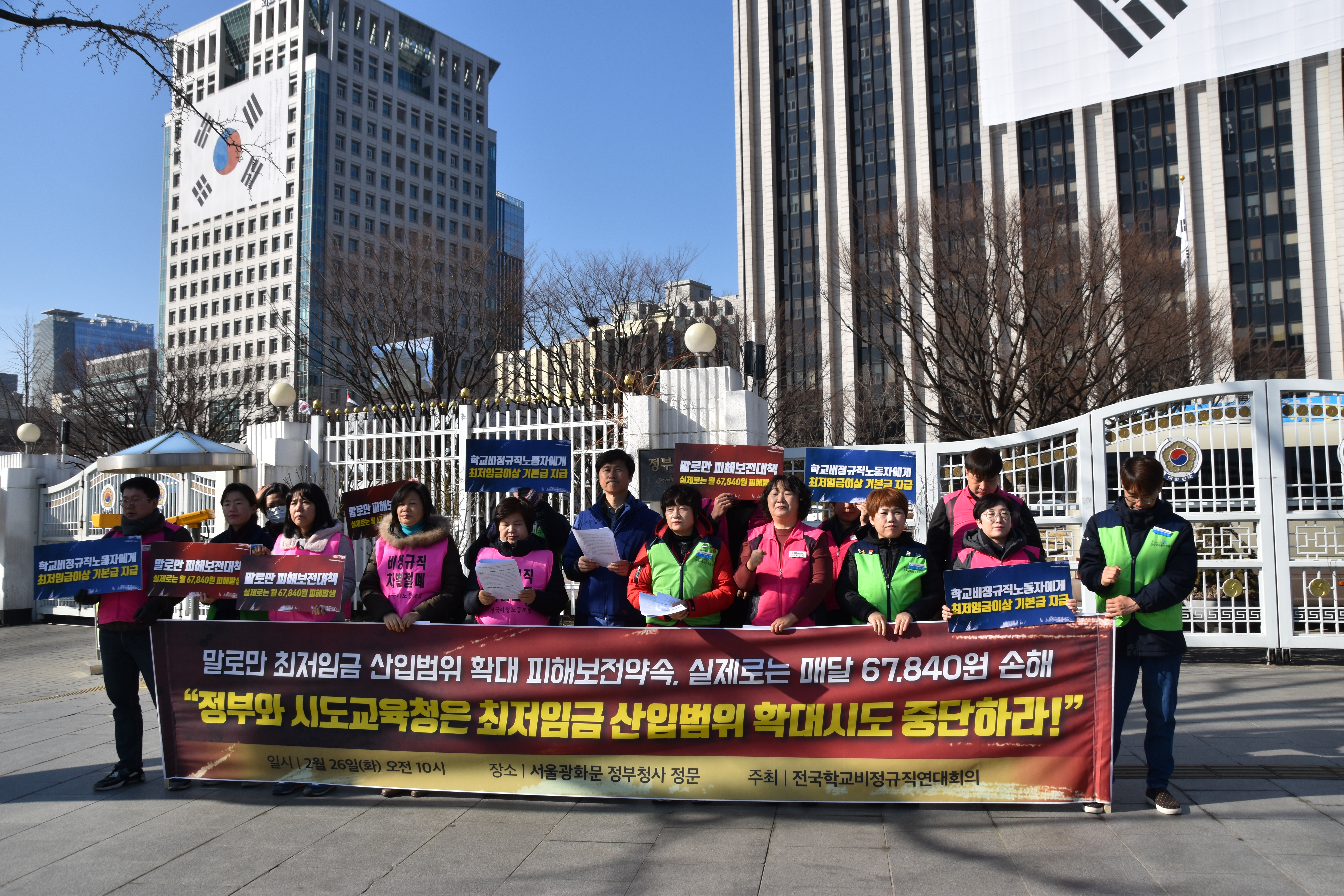 “정부와 시도교육청은 최저임금 산입범위 확대 중단하라 !” 기자회견을 진행했습니다.
