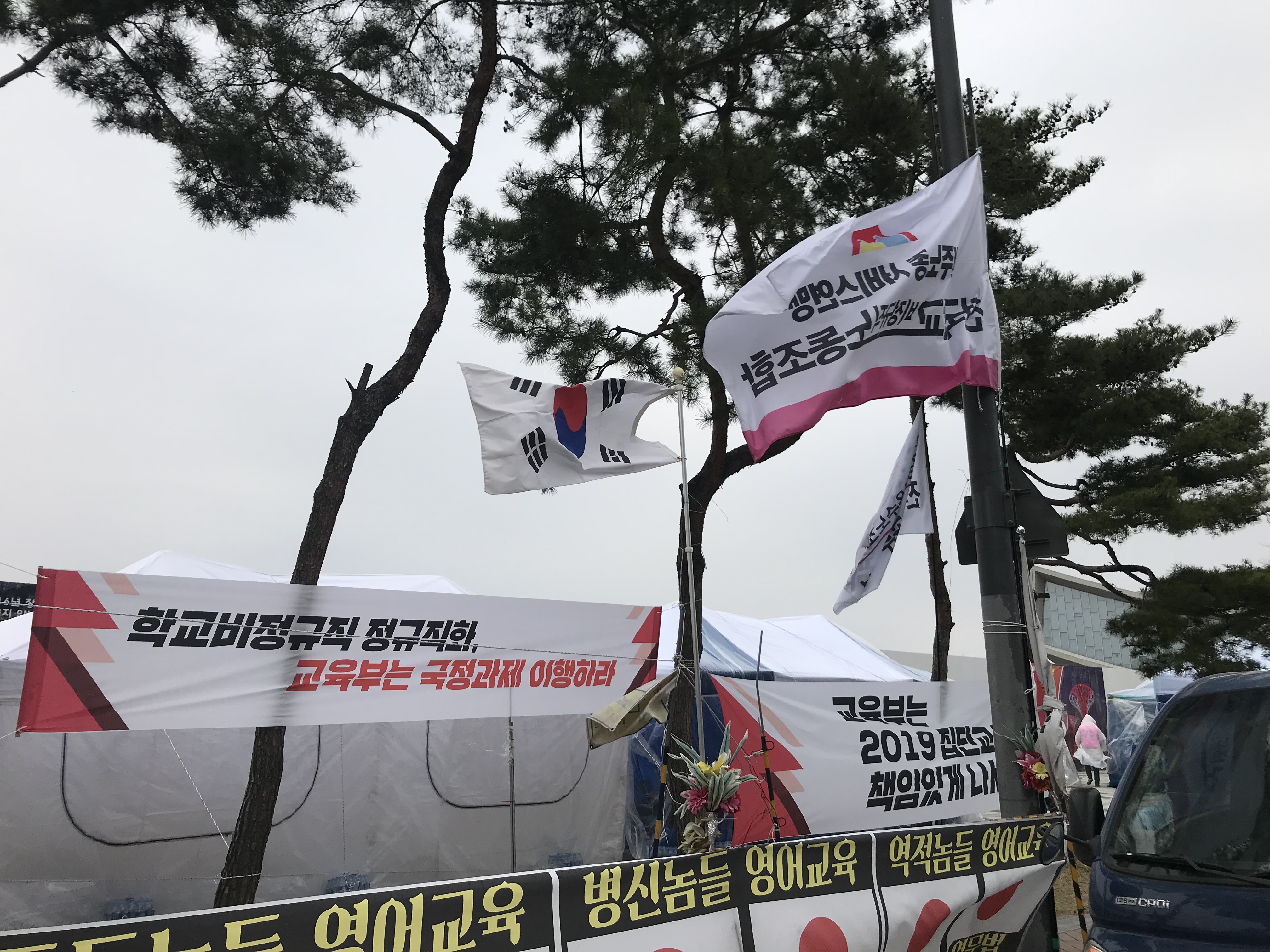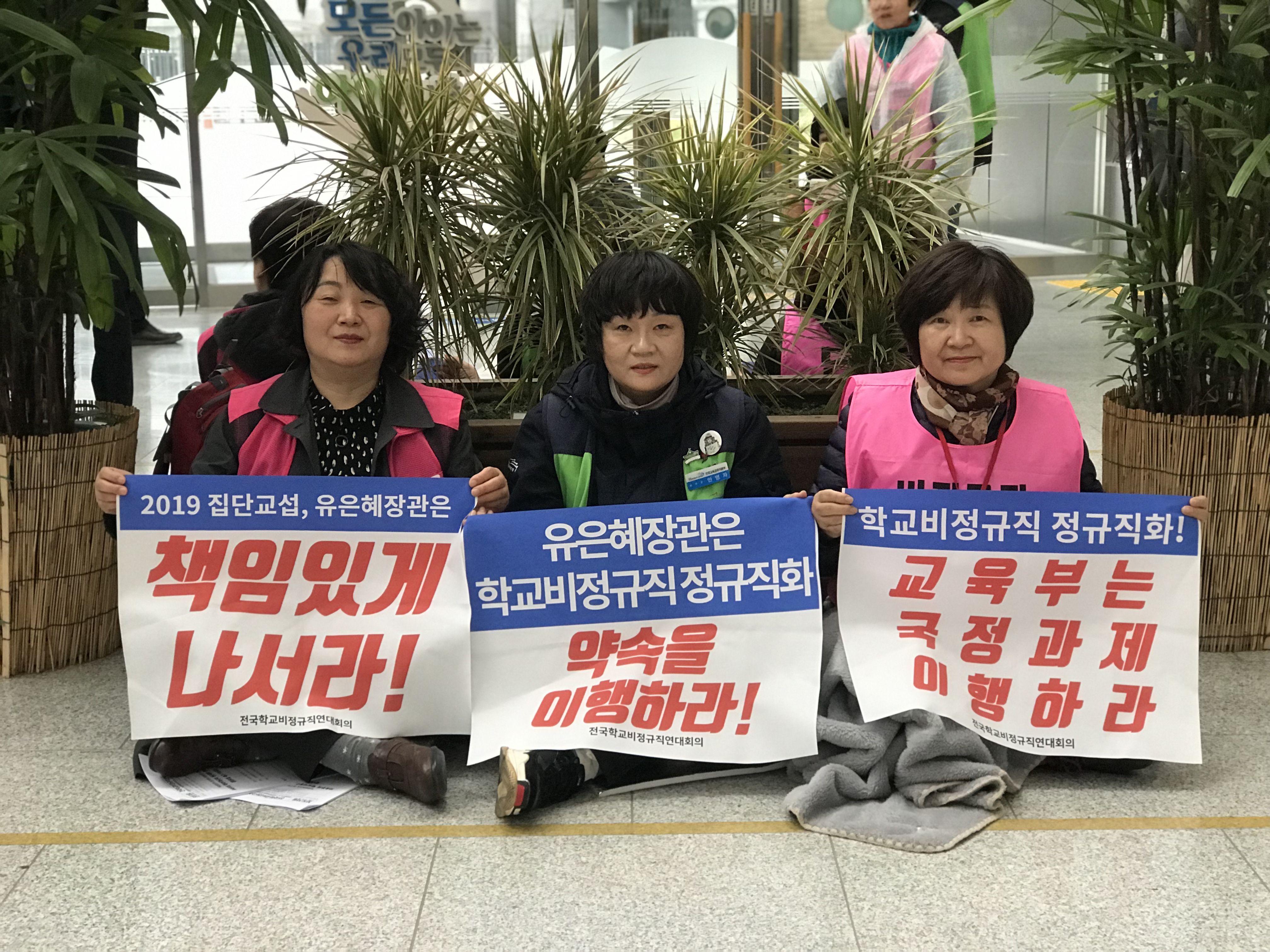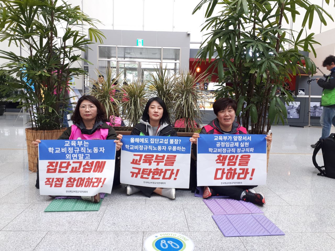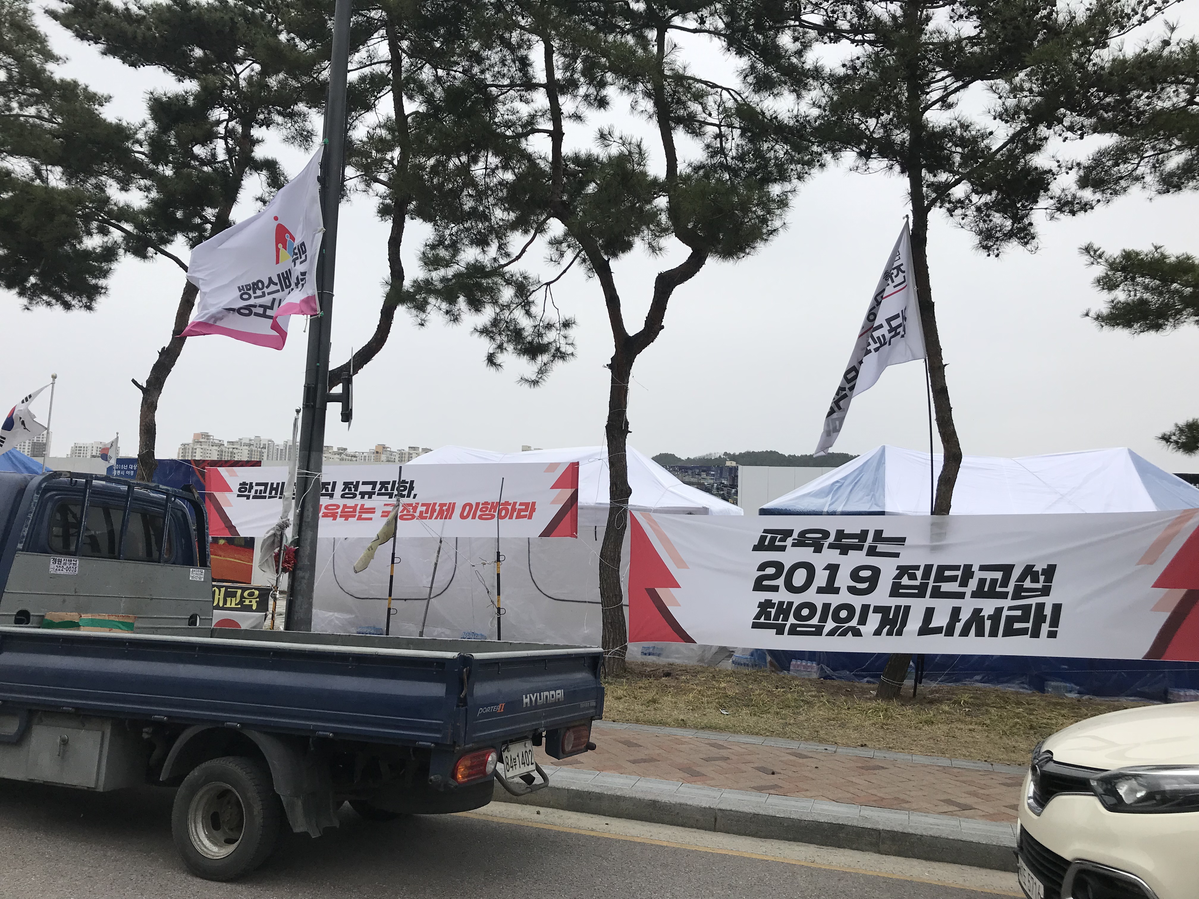 농성 시작! 말로만 약속하지말고 교육부는 집단교섭에 직접참여하라