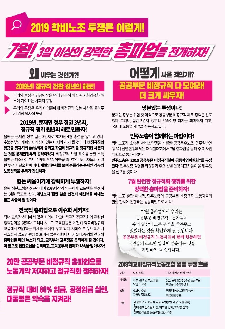 [학비노동자신문 18호] 20만 공공부문 비정규직 노동자와 함께 7월 총파업으로 정규직화 완성하자!
