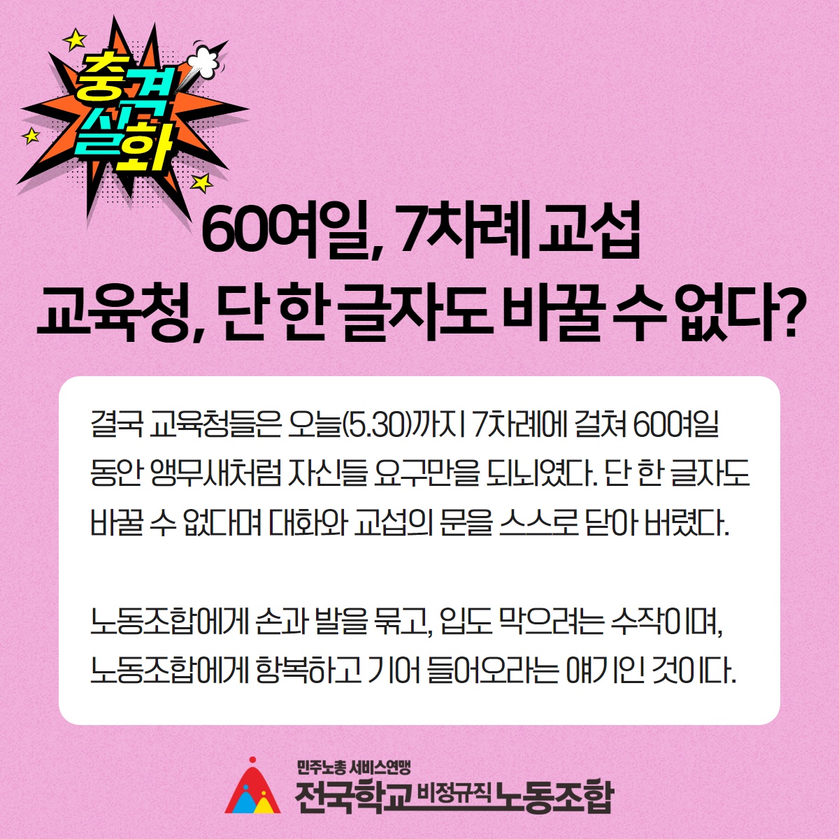 전국 교육청과 청와대 앞 무기한 농성 돌입!