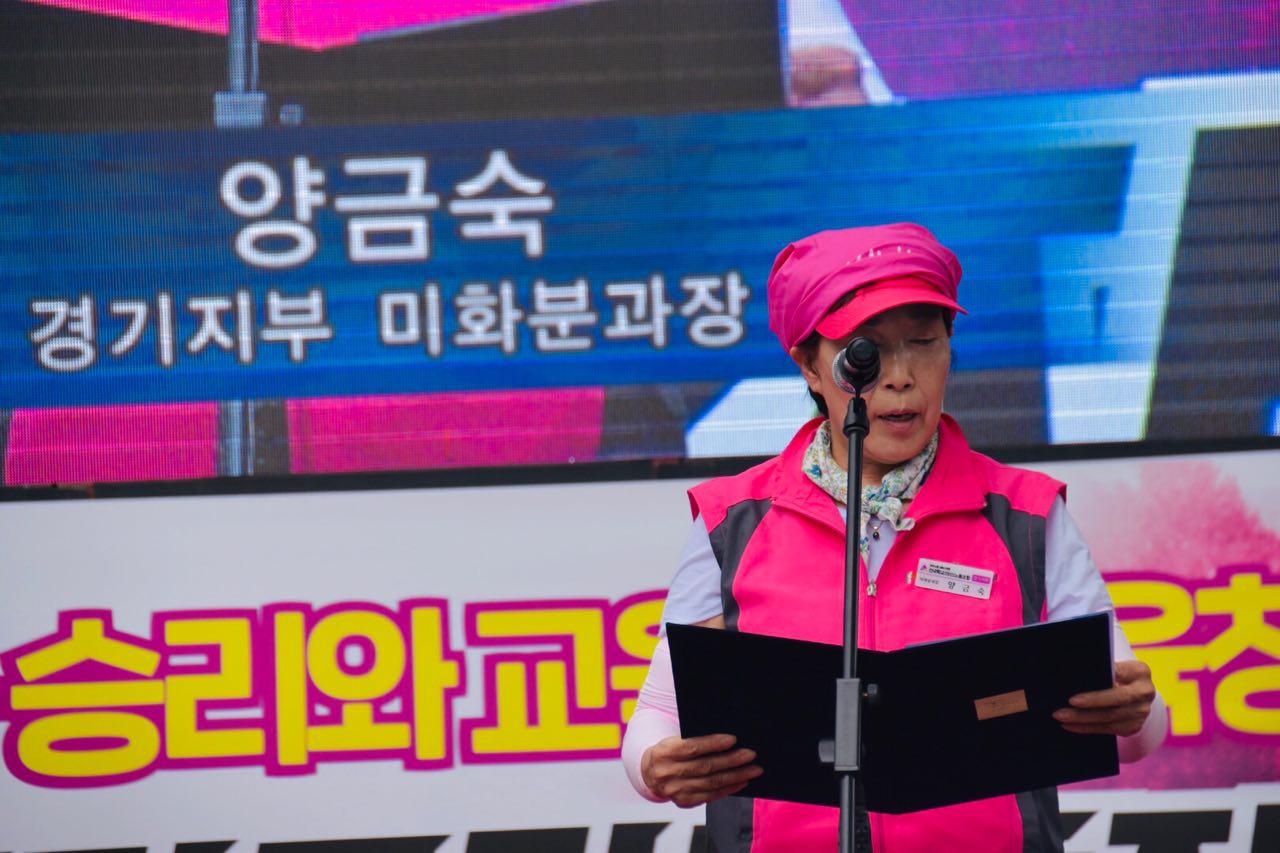 투쟁을 벌이고 있는 초등스포츠강사와 미화·당직 조합원들의 투쟁발언을 시작으로 7월 총파업 기간동안 응원과지지, 성원을 보내준 학부모들과 학생들의 지지발언과 조합원들의 준비한 공연이 이어졌다.