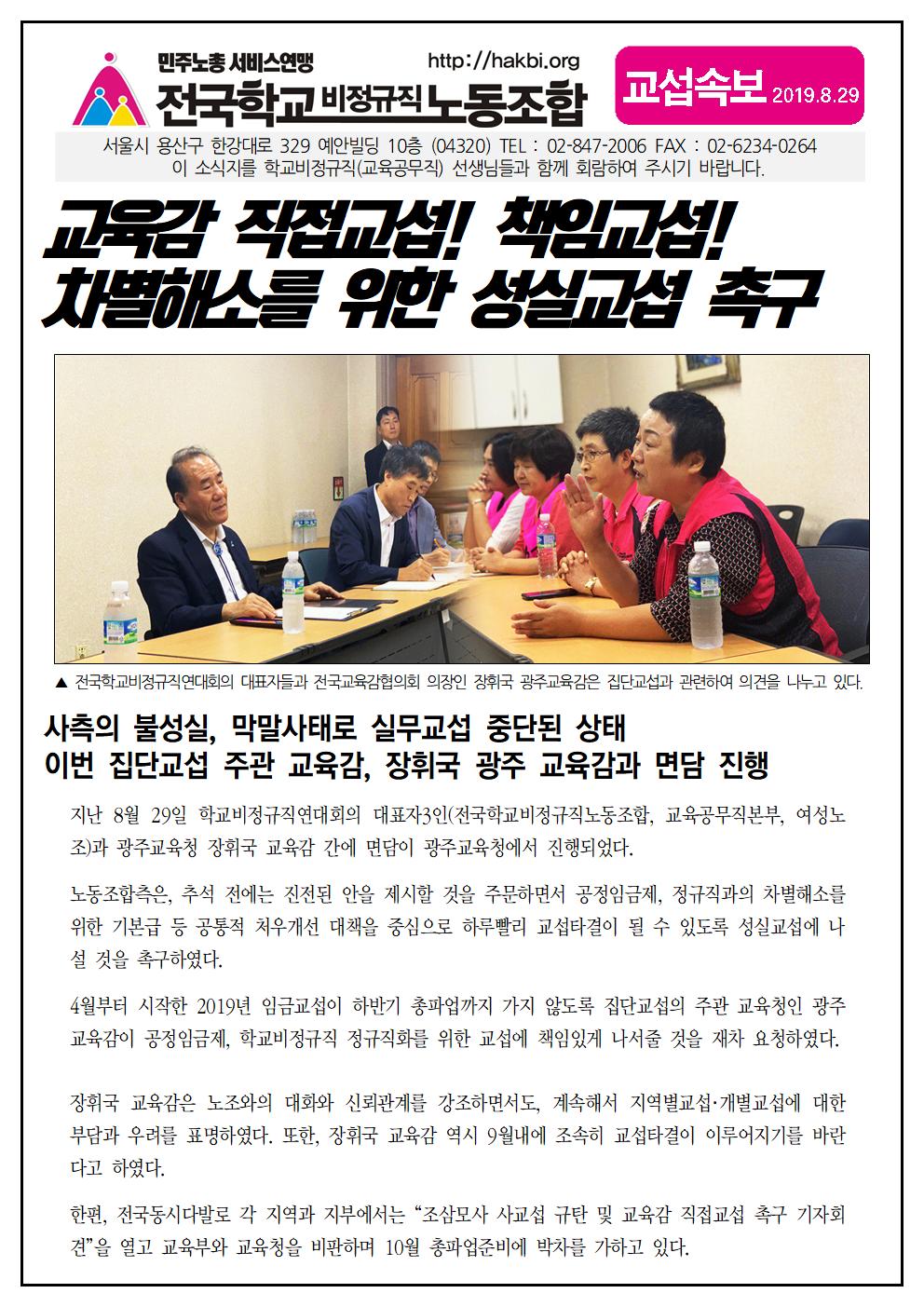 [교섭속보]교육감이 직접교섭! 책임교섭! 차별해소를 위한 성실교섭 촉구