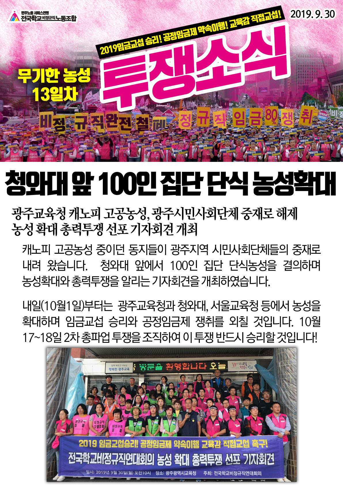[노숙농성13일차]농성 확대 총력투쟁 선포!
