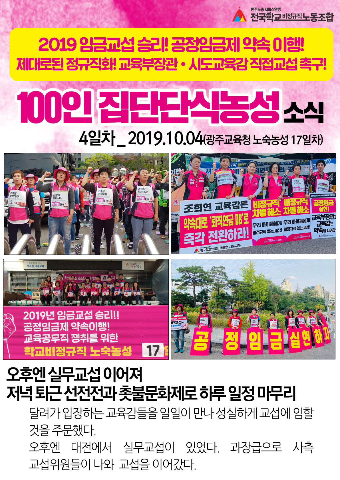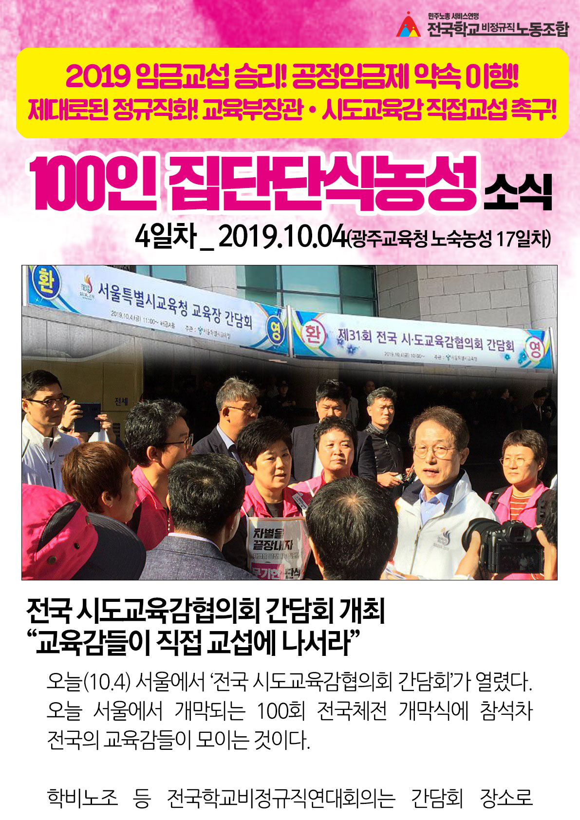 [100인집단단식노숙농성4일차] 전국시도교육감협의회 개최, 성실교섭 촉구