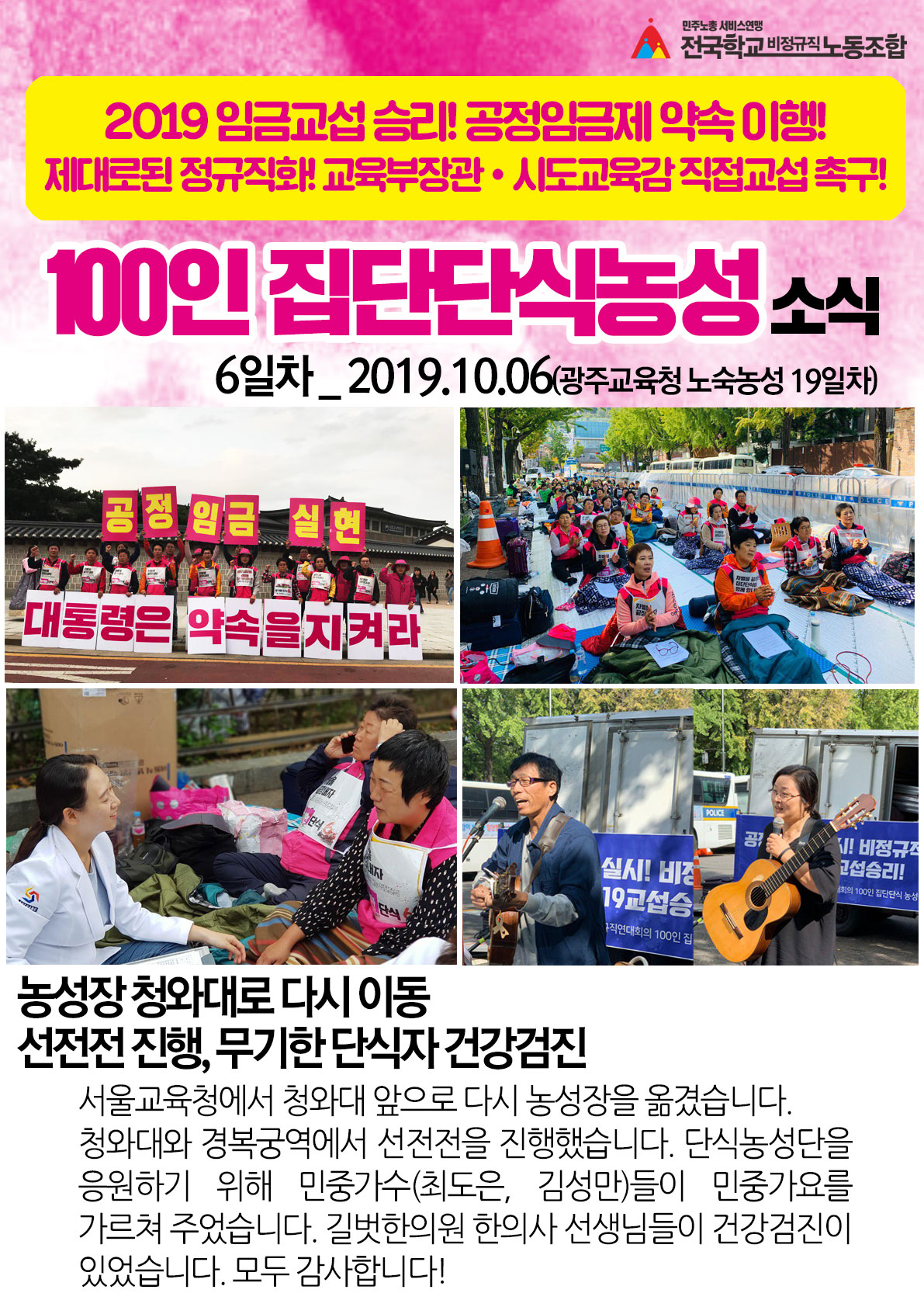 청와대 100인집단단식노숙농성 6일차_10월6일 소식