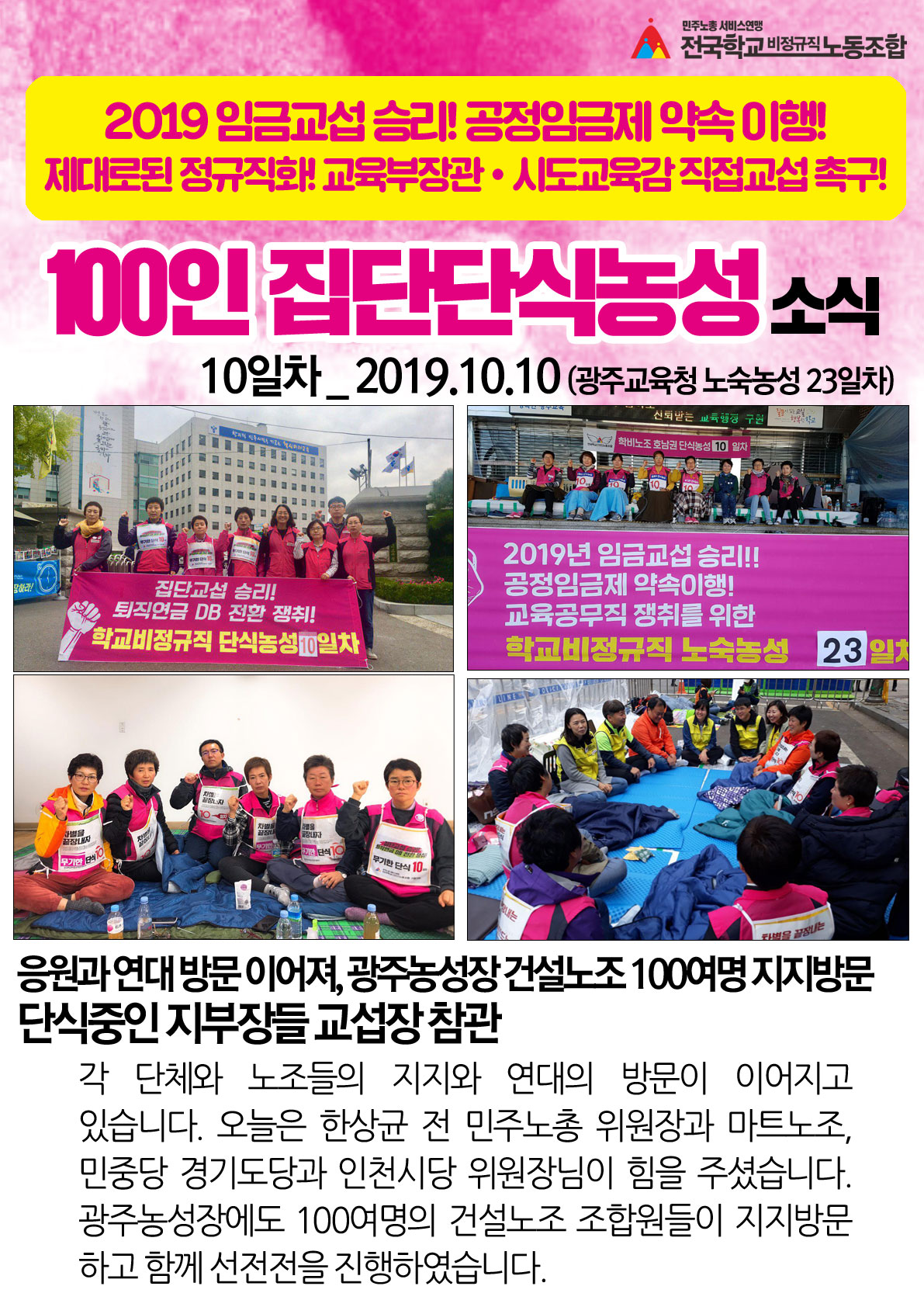 [청와대100인집단단식노숙농성10일차] 지지와 연대방문 이어져