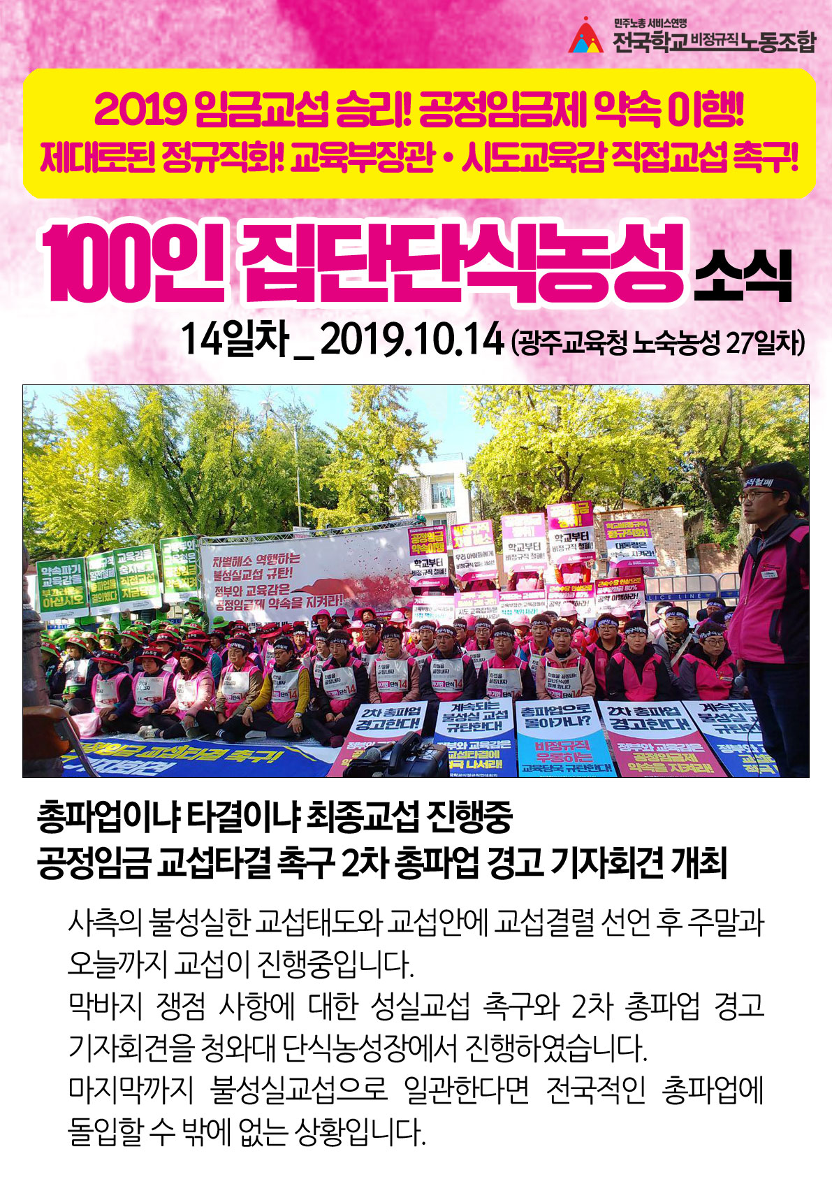 [청와대100인집단단식노숙농성14일차] 총파업이냐 타결이냐 최종교섭 진행중