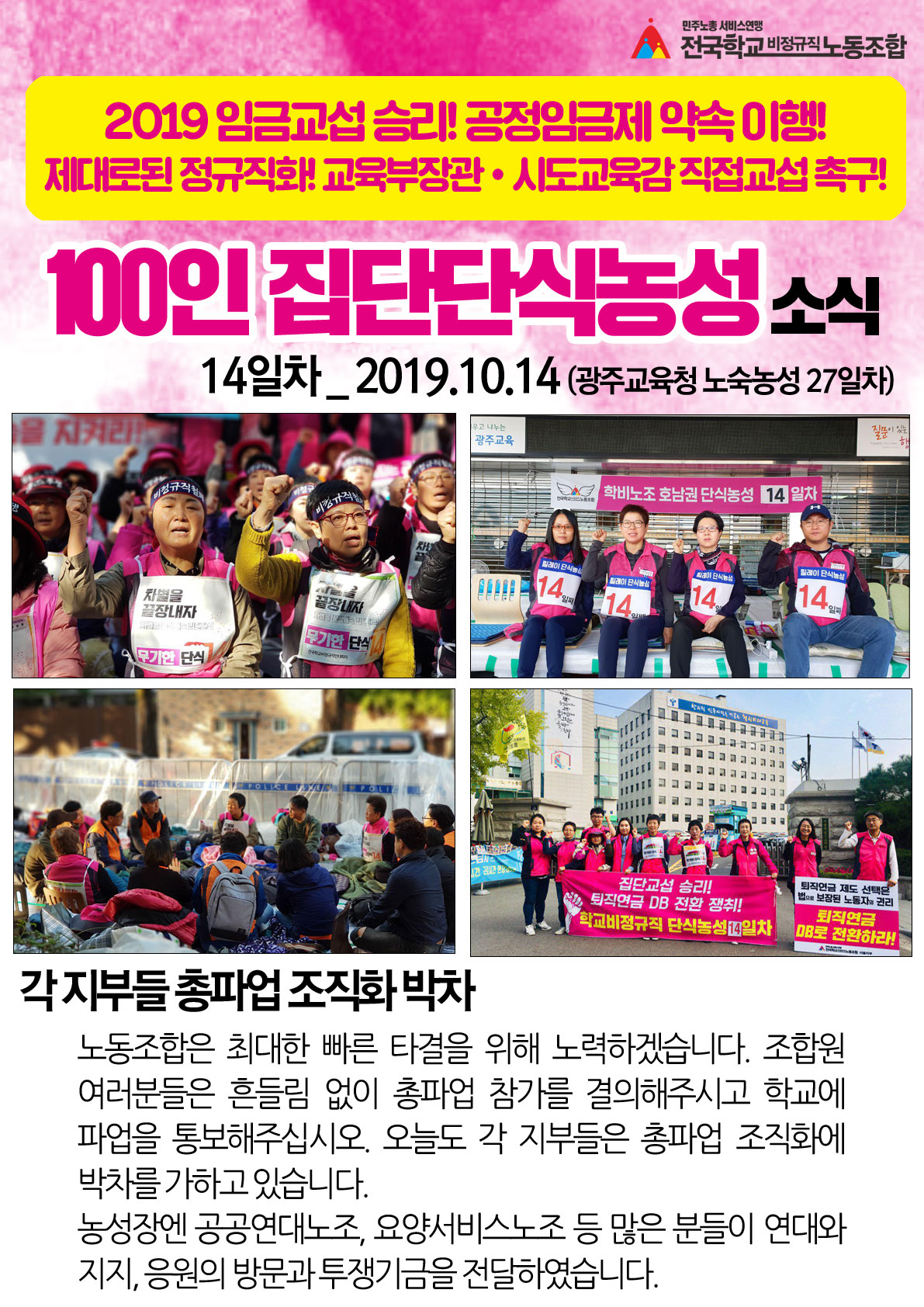 [학비노조 단식농성 15일차] 집단교섭 잠정합의! 위대한 조합원의 승리!|