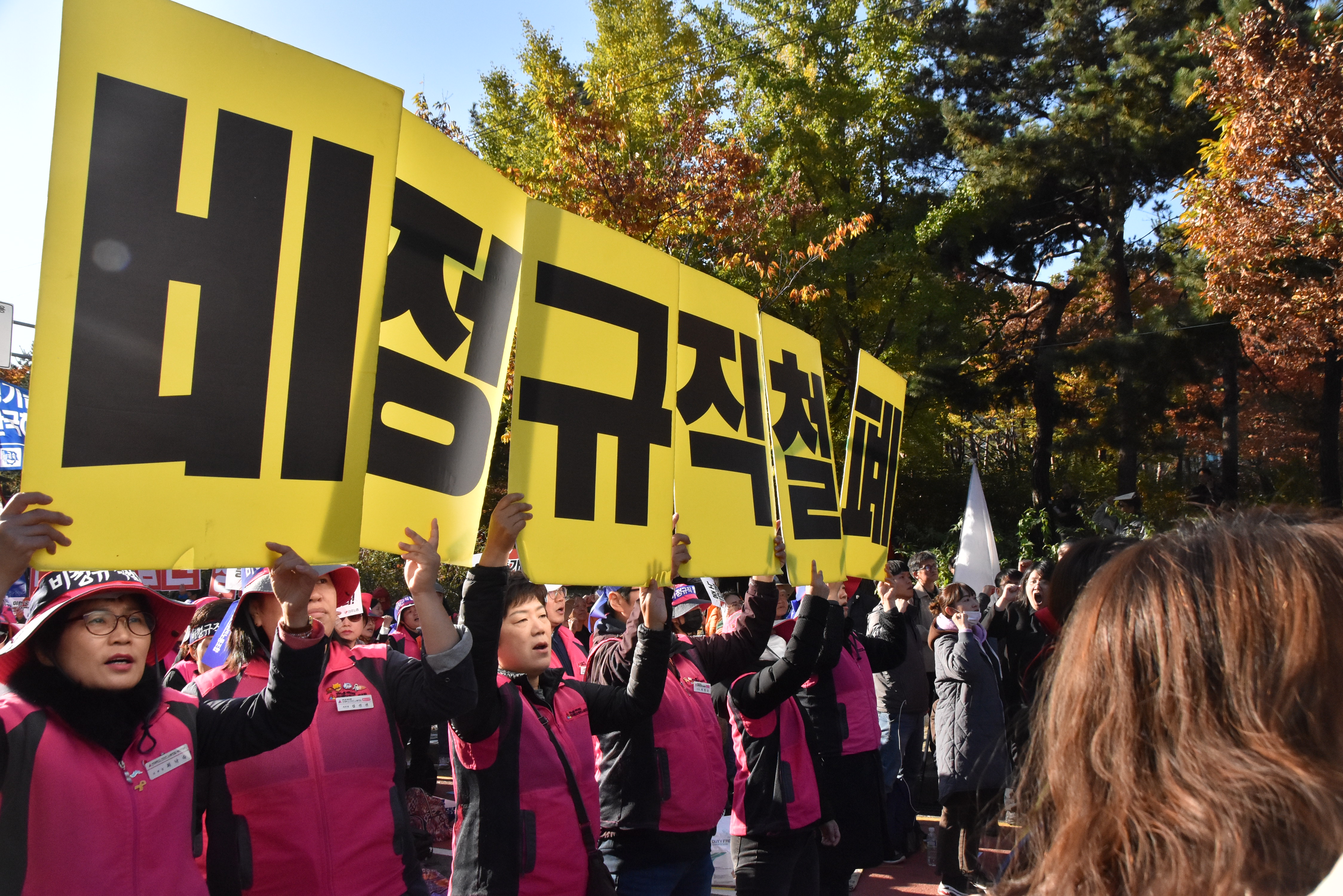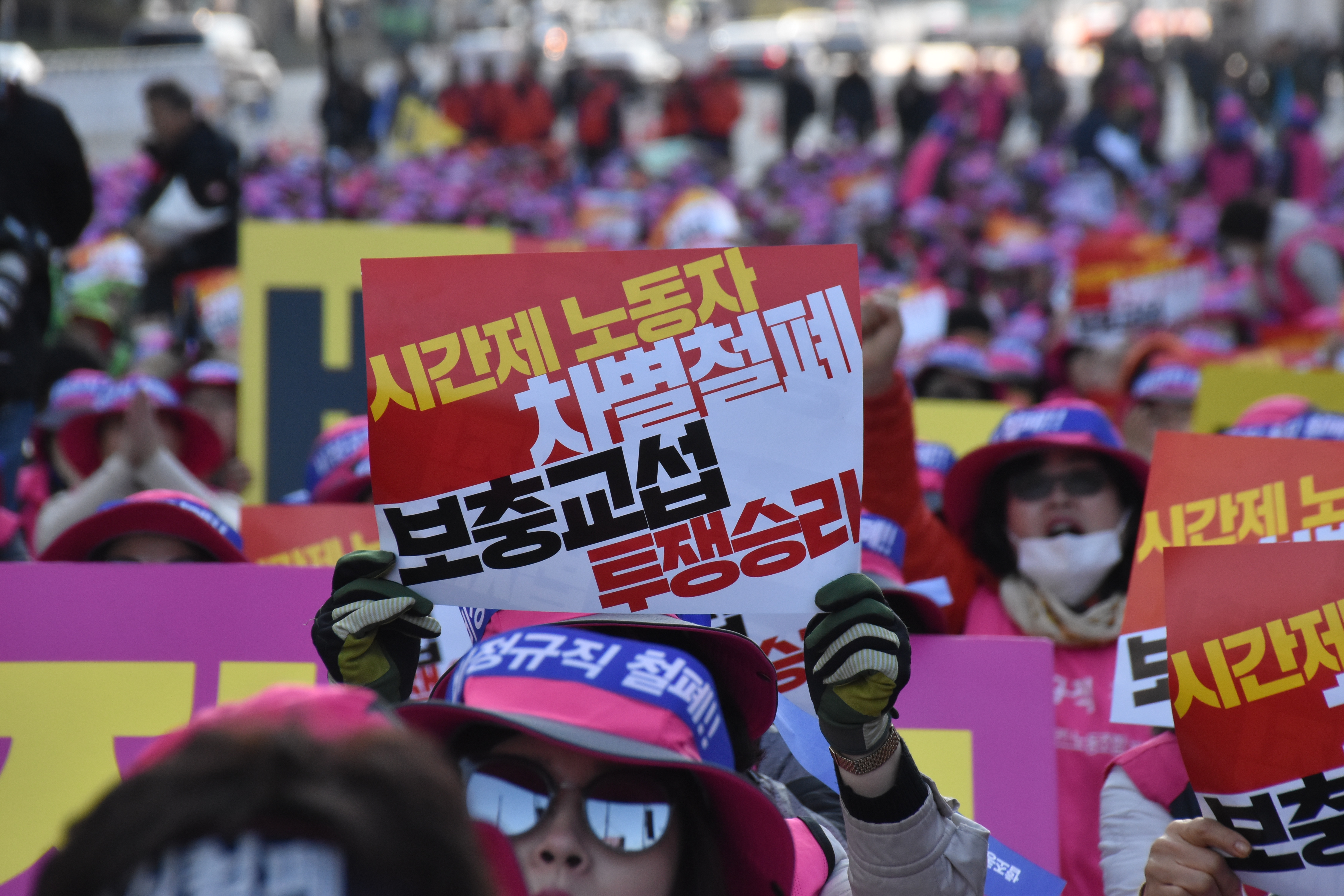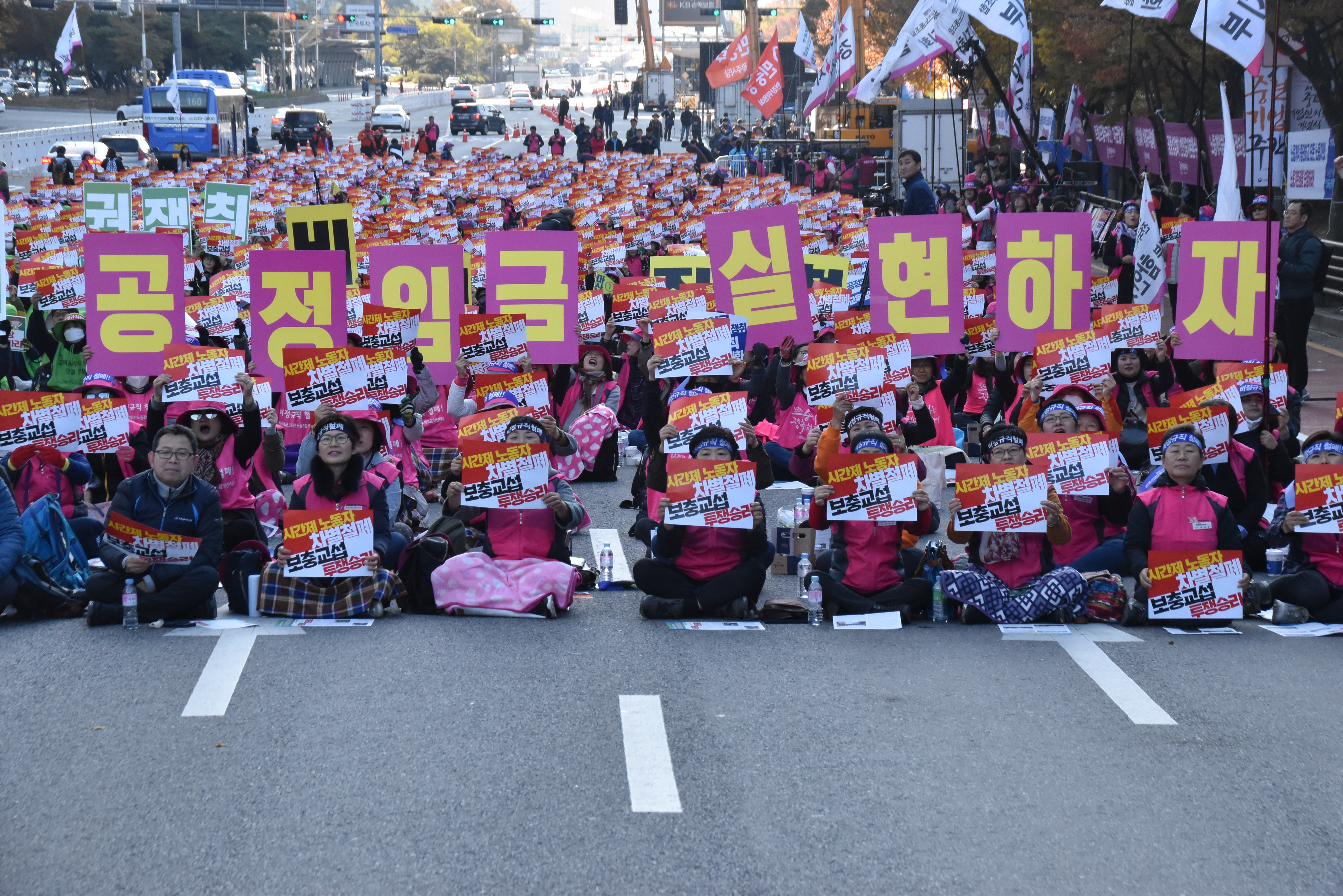 '전태일열사 정신계승 2019 전국노동자 대회'가 열리는 서울 여의도에서 "시간제 차별철폐! 보충교섭 승리! 학교비정규직 노동자대회"를 열고 시간제 노동자에 대한 교통비 차별지급과 보충교섭 직종 동일 인상을 요구했다.