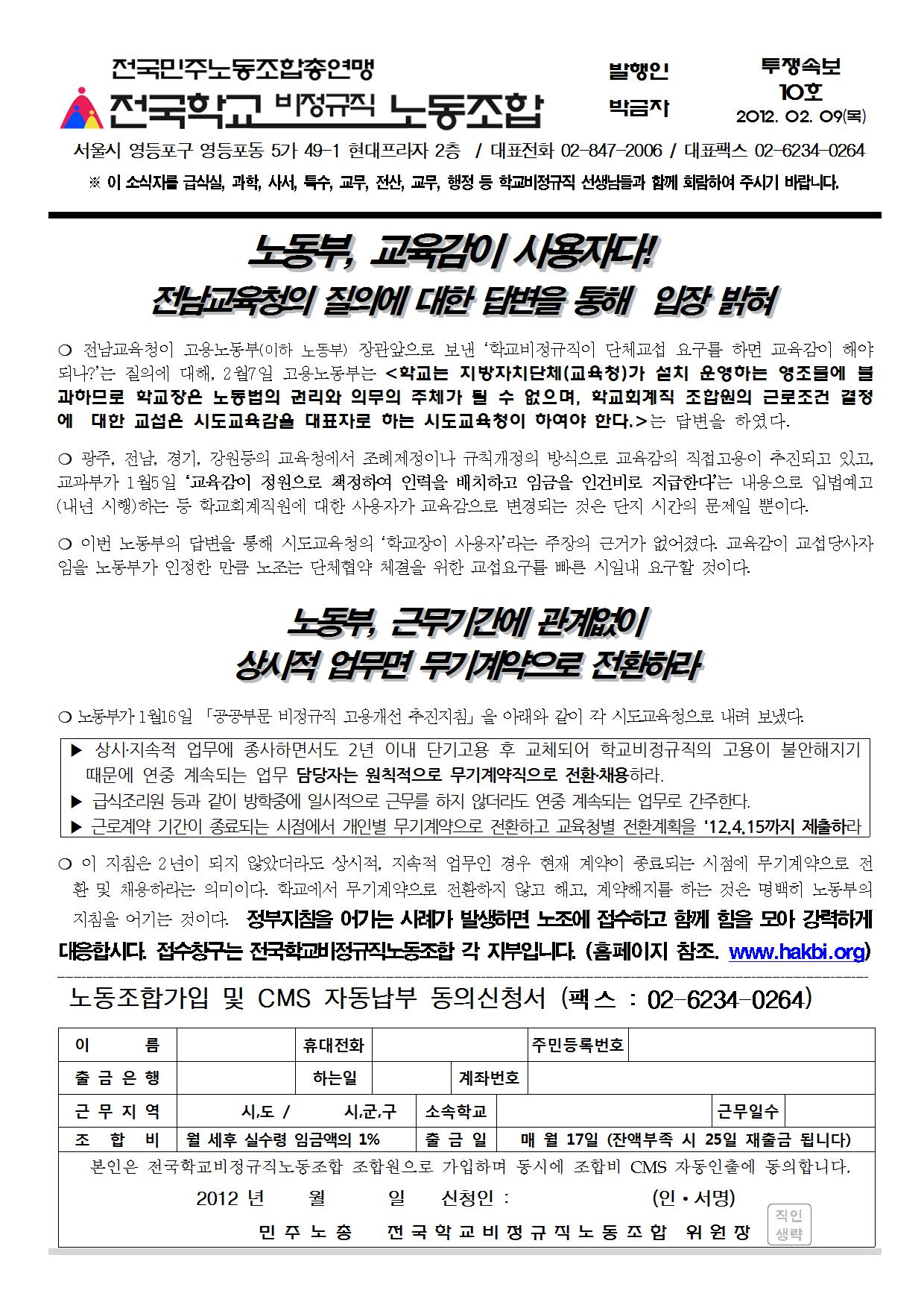 투쟁속보11호<부당해고, 계약해지 사례>를 취합하고 있습니다!!