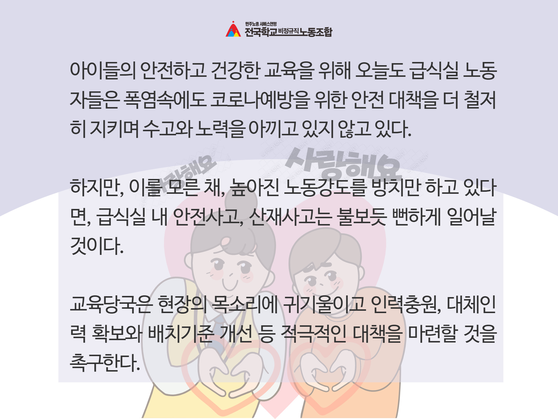 코로나 급식실 업무 인력충원, 폭염대책 절실_전국 동다발 기자회견 개최