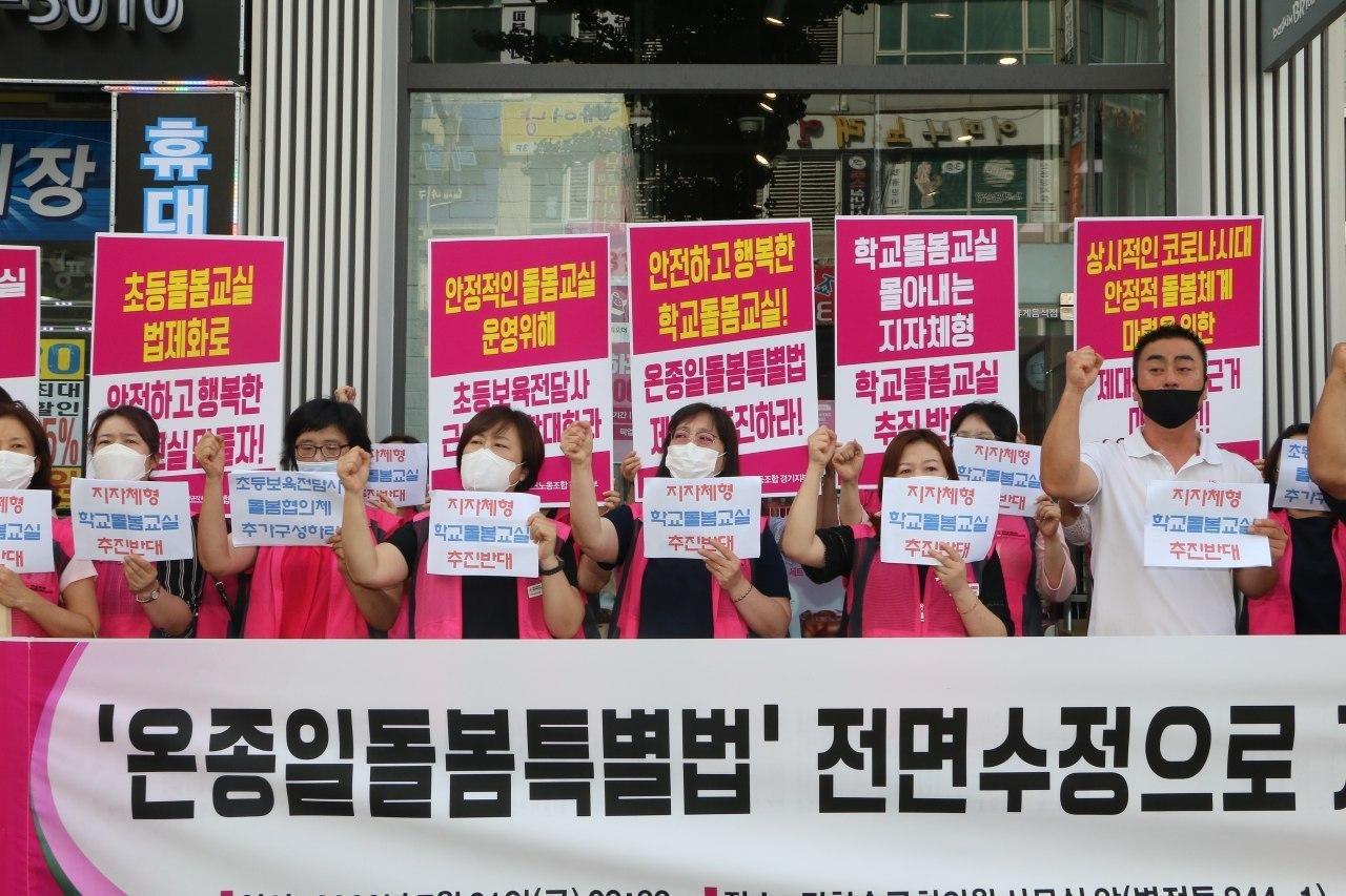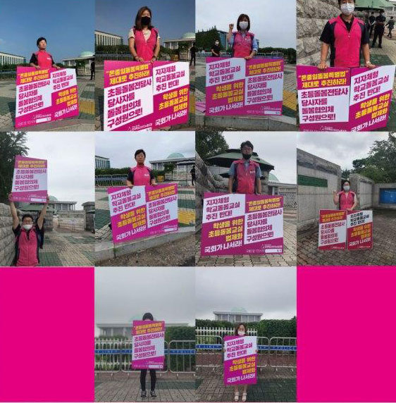 초등돌봄교실 법제화와 제대로 된 온종일돌봄특별법 제정, 지자체형 학교돌봄교실 추진 반대 등을 요구하며 지난 20일부터 국회 앞 1인시위를 진행중이다.