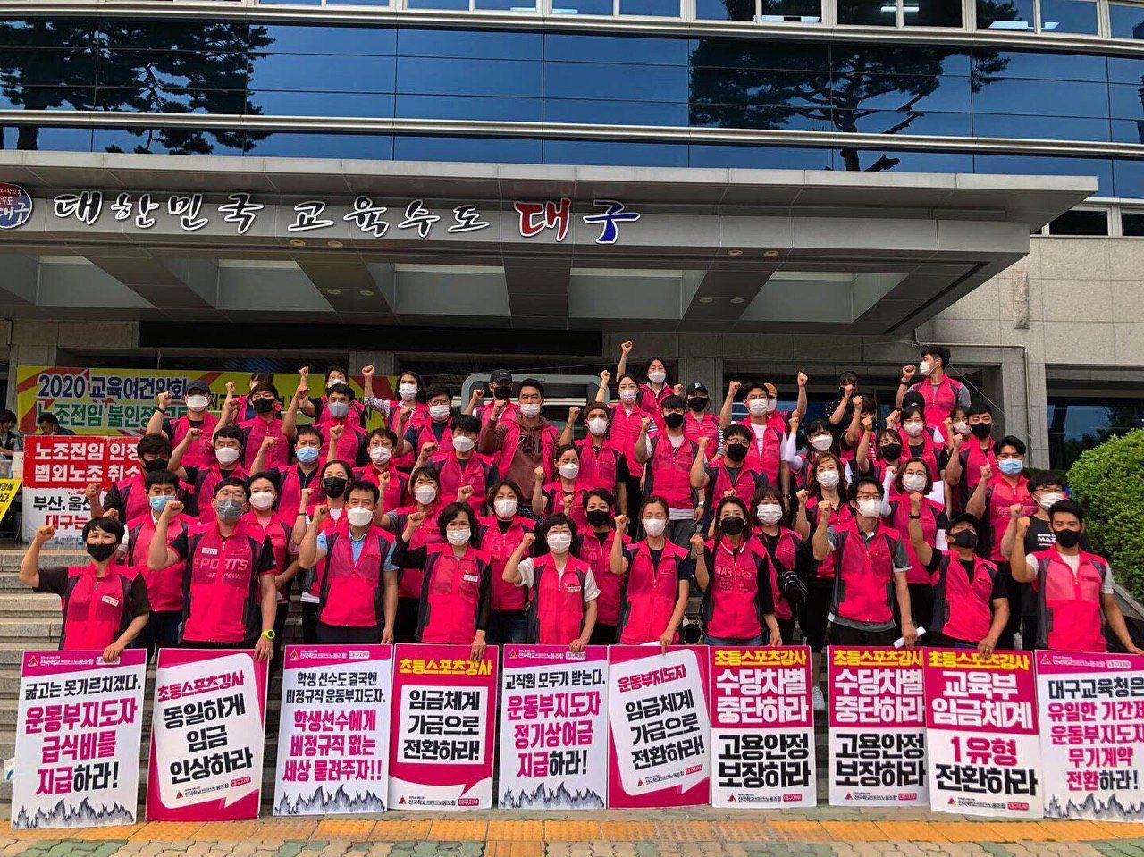 대구지부는 대구교육청 앞에서 기자회견과 선전전을 통해 초등스포츠강사와 학교운동부지도자의 고용안정과 처우개선을 요구했다.