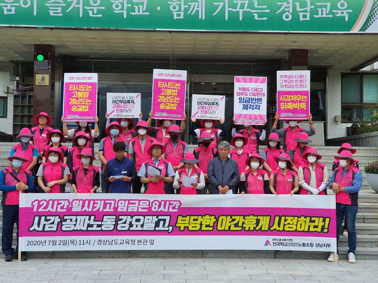 경남지부는 지난 2일 경남교육청에서 기자회견을 열고 사감들에 대한 부당한 야간휴게 시정과 정당한 임금지급을 요구했다.