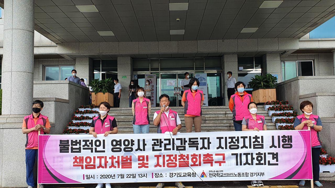 지난 22일 경기지부는 기자회견을 열고 일방적이고 불법적인 영양사 관리감독자 지정지침 시행에 대해 책임자처벌과 지정철회를 촉구했다.