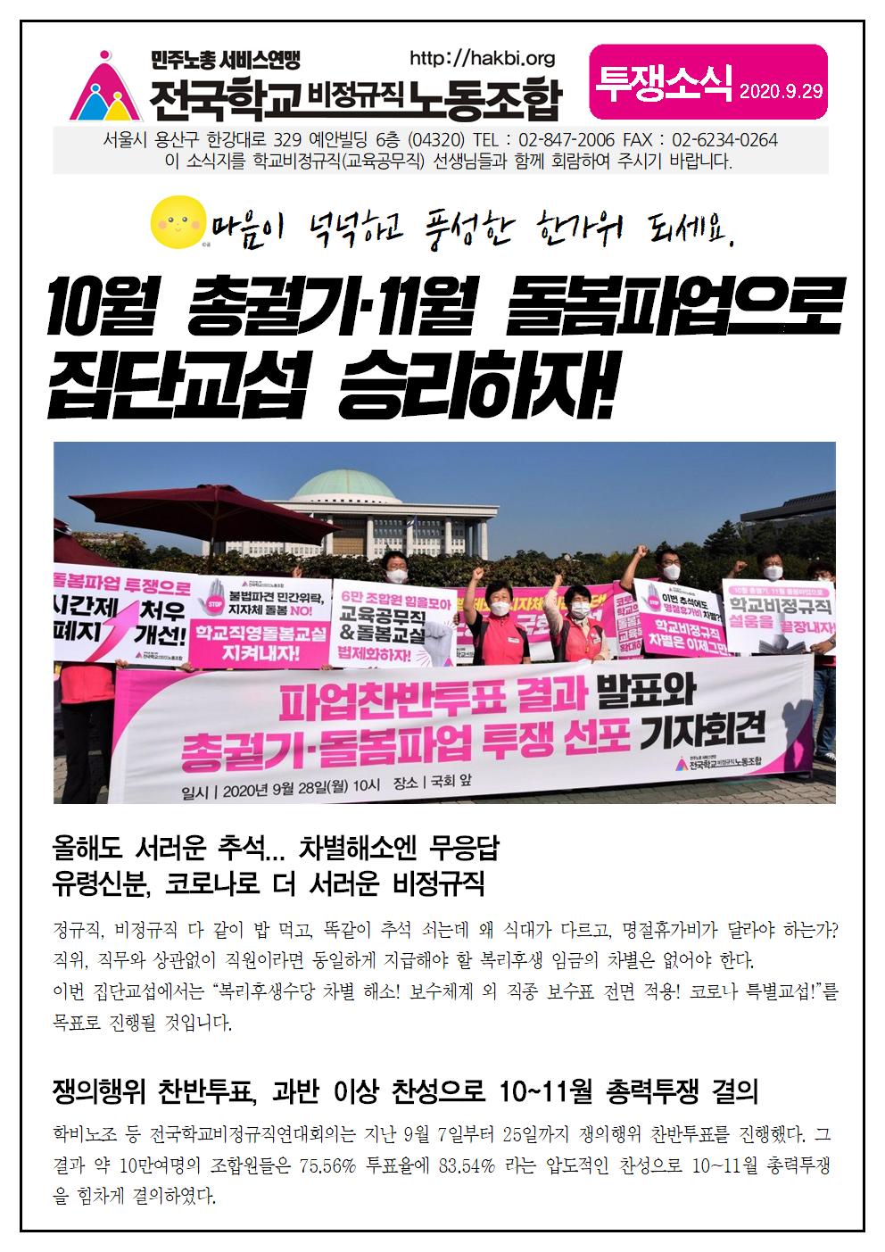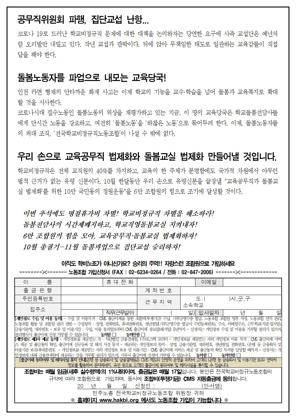 학교비정규직, 우리는 교육의 주체다! 10월 총궐기-11월 돌봄파업으로 집단교섭 승리하자!