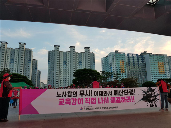 지지부진했던 집단교섭 절차협의가 마무리 되고 일정, 위원구성 등 안이 만들어졌습니다. 각 지부들이 교육청 앞에서 집단교섭 성실교섭 촉구 교육감 면담투쟁, 농성투쟁 등을 진행한 결과입니다. 교육청측은 앞으로 진행될 교섭에 성실하게 나서길 바랍니다.