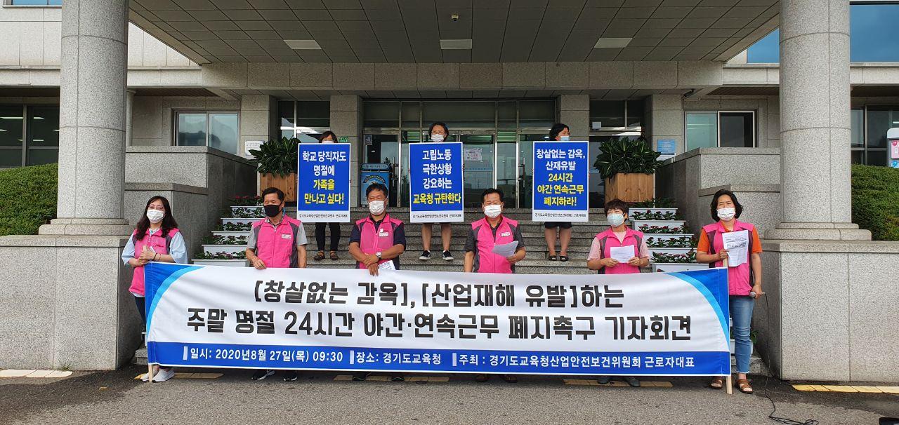 - 경기지부는 임금교섭 투쟁 승리를 위한 산보위 8대 요구안 쟁취 9.24 교육지원청별 동시다발 기자회견을 진행했습니다. 경기도교육청 로비에서 노숙농성과 매일 108배를 진행하고 있습니다.