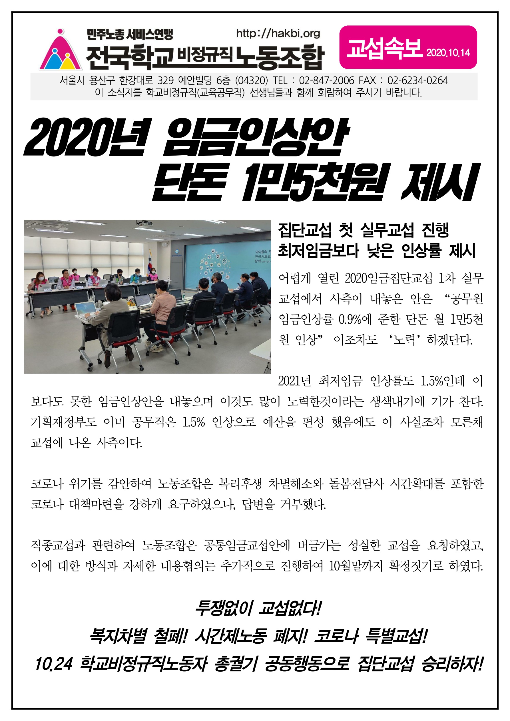 [교섭속보] 2020년 임금인상안 단돈 1만5천원 제시