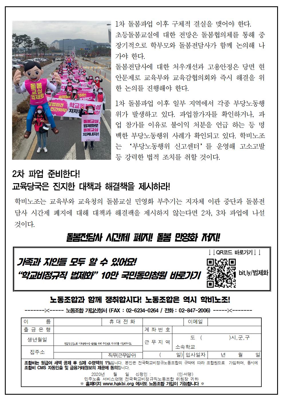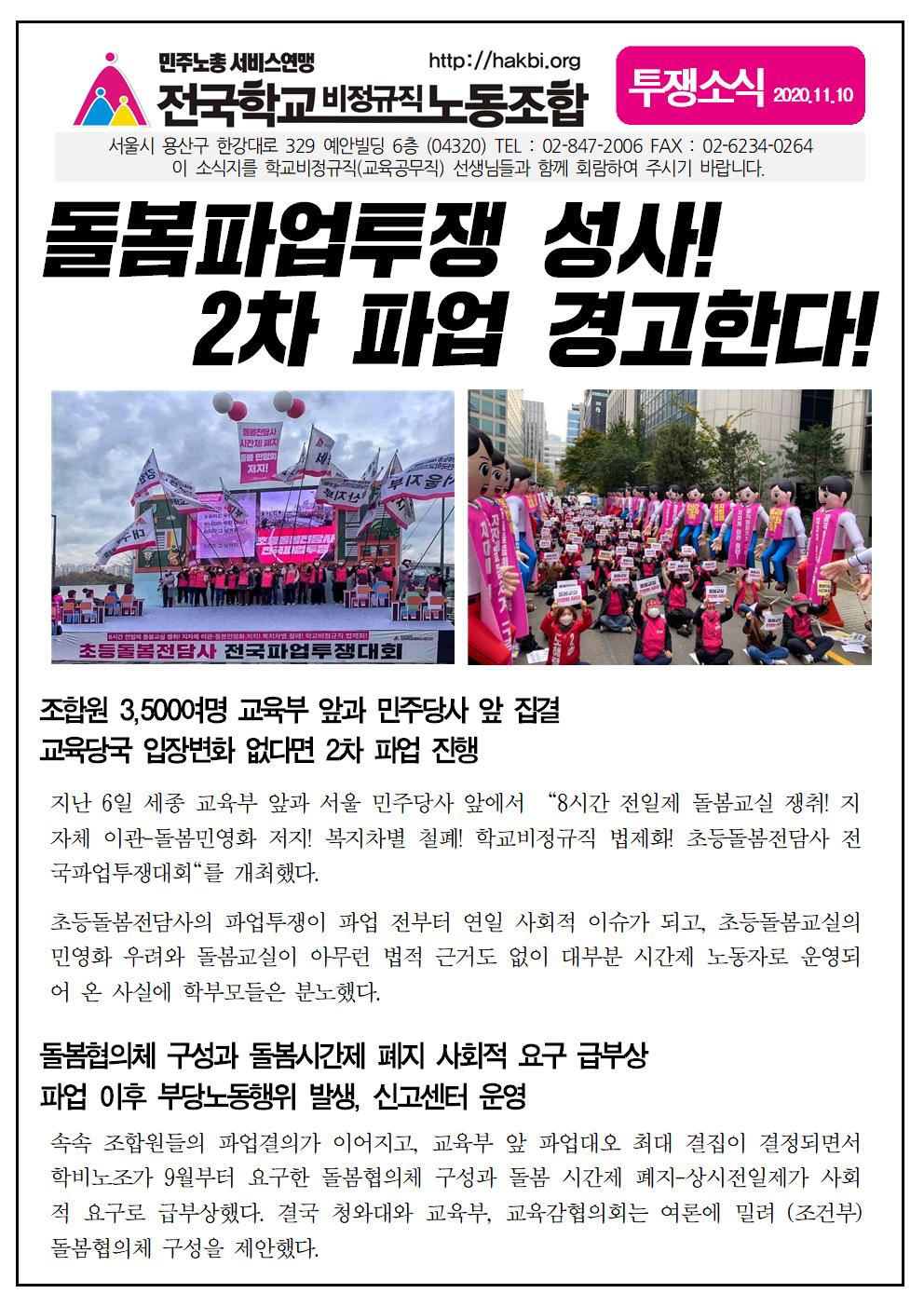 돌봄파업투쟁 성사! 2차 파업 경고한다!