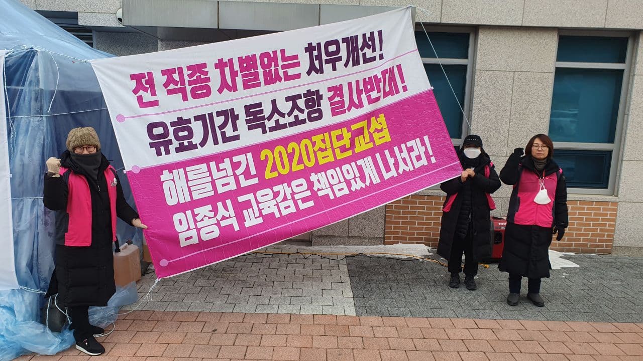 이에, 오늘(11일)부터 전국 17개 시도교육청에서 간부들을 중심으로 집단교섭 타결을 위한 투쟁에 돌입한다.