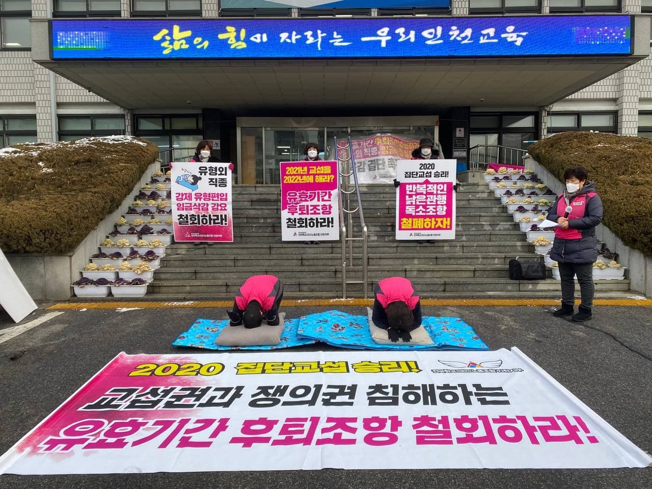 교육청들은 작년 12월 10차 실무교섭을 끝으로 노동조합의 정식교섭 요구를 번번히 거절하고, 해를 넘긴 현재 11차 실무교섭조차 잡지 못하고 있다.