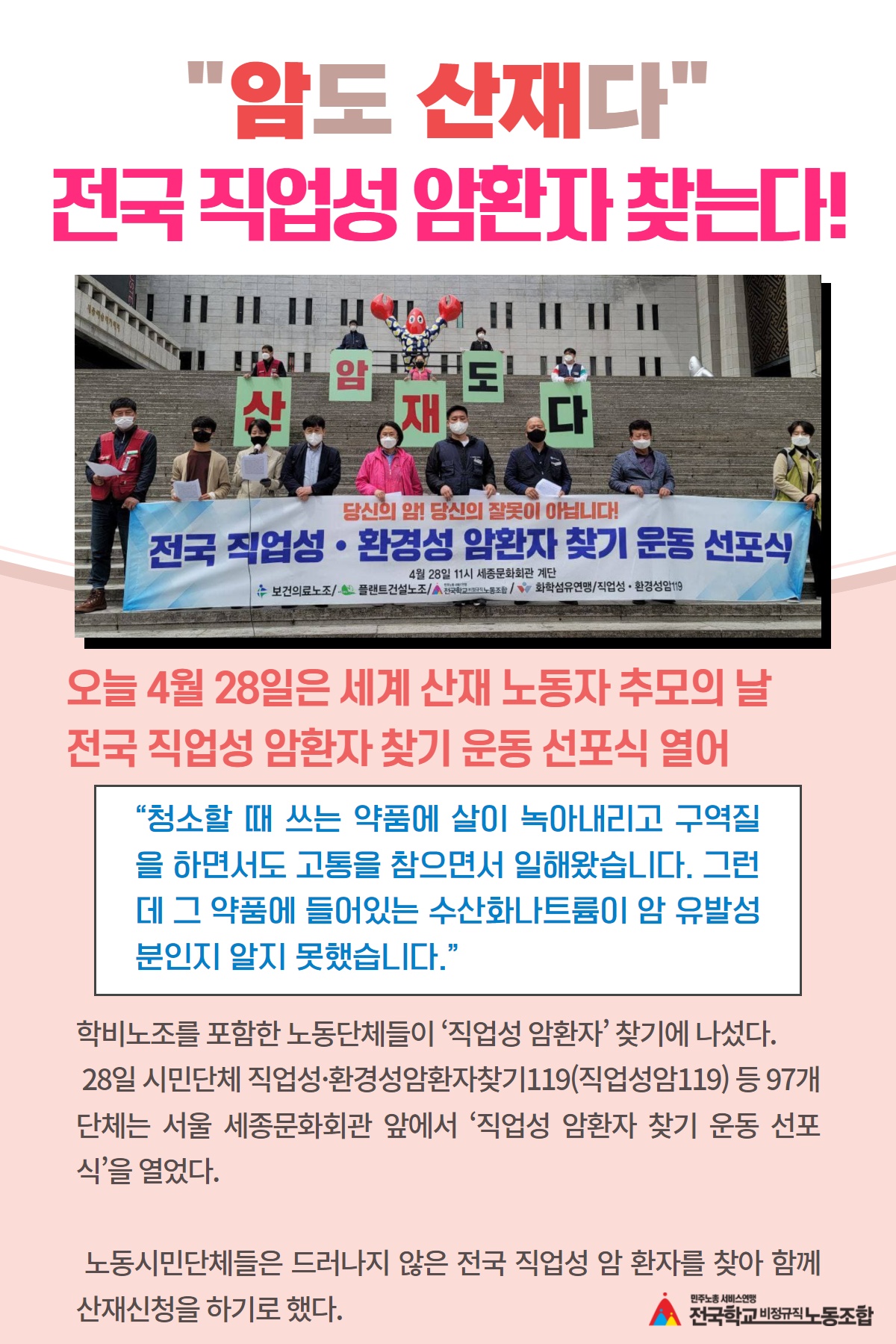 암도 산재다! 전국 직업성 암환자 찾는다.