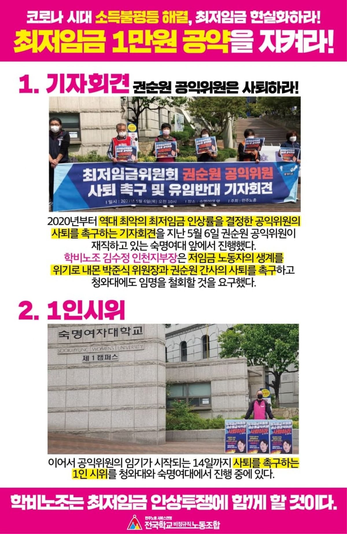 코로나 시대 소득불평등 해결! 최저임금 현실화하라!