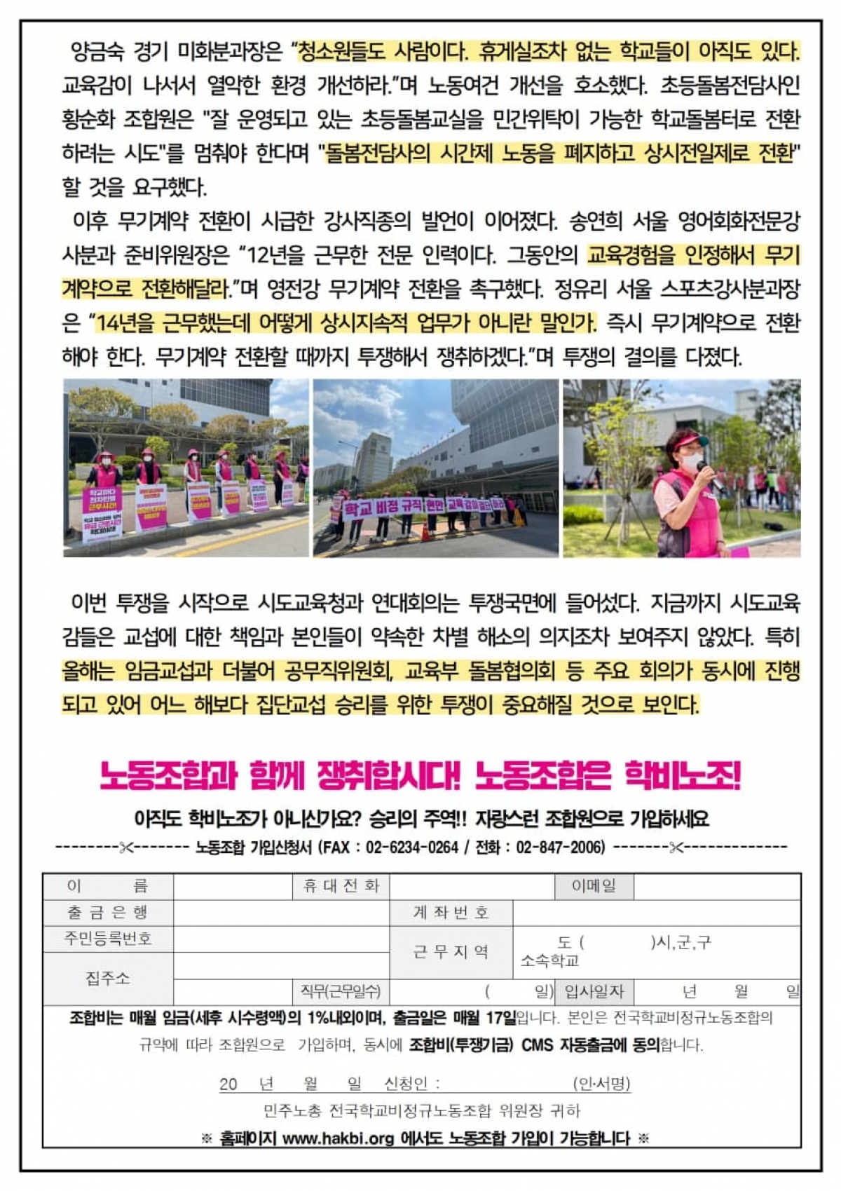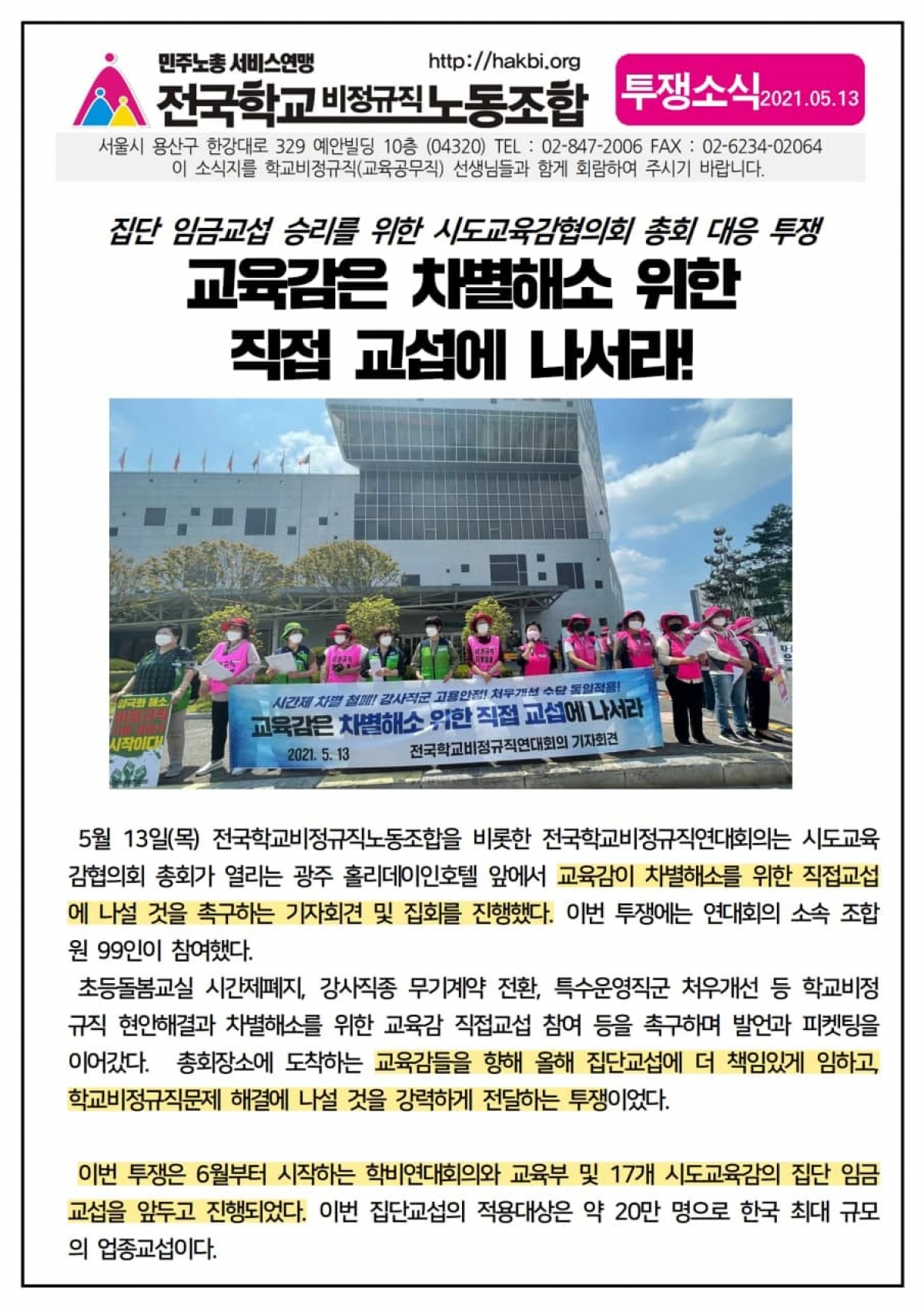 교육감은 차별해소 위한 직접교섭에 나서라!