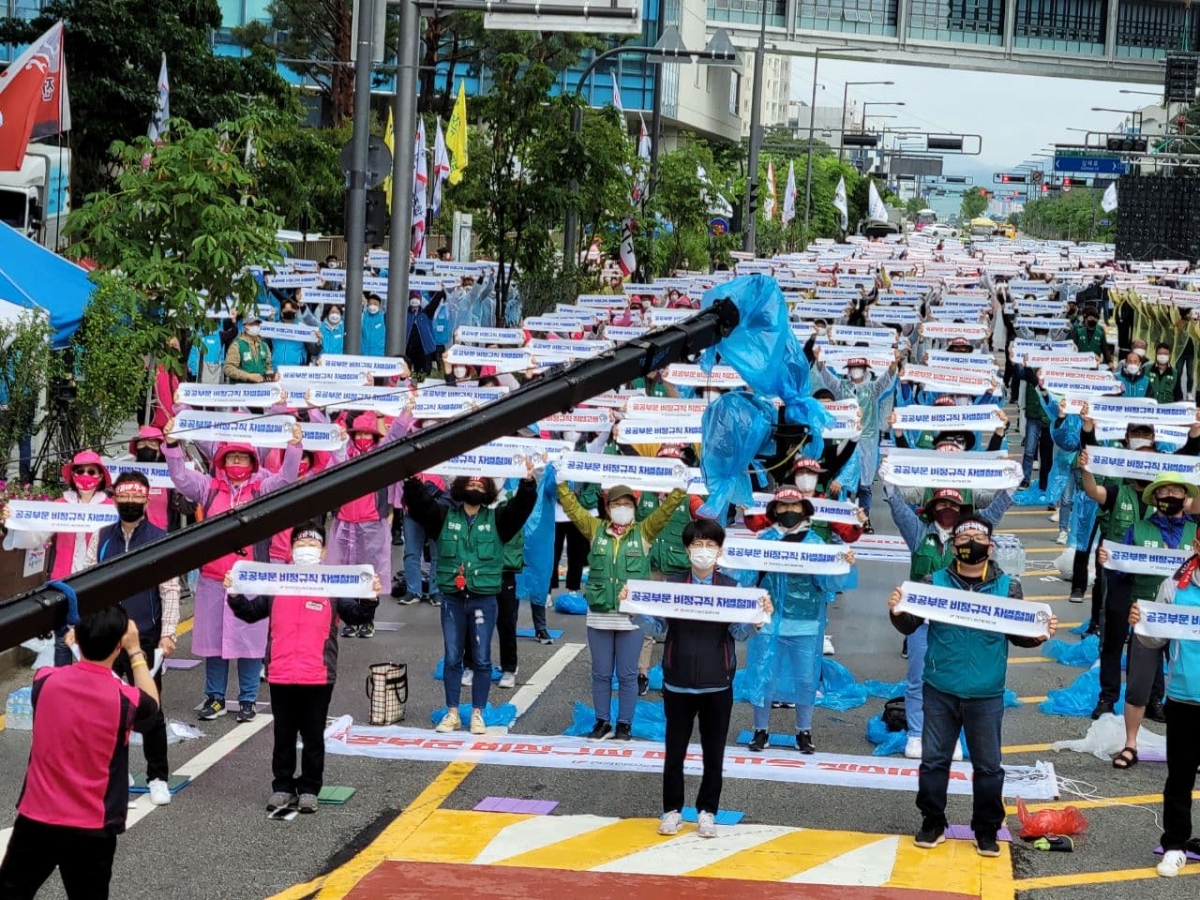 공공부문 비정규직 노동자의 차별을 해소할 의지가 없는 정부를 향한 노동자들의 목소리가 크게 울려 퍼졌다.