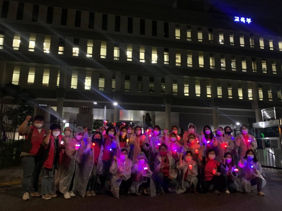 돌봄개악안 추진 중단하라! 교육부 앞 긴급 촛불집회 열어