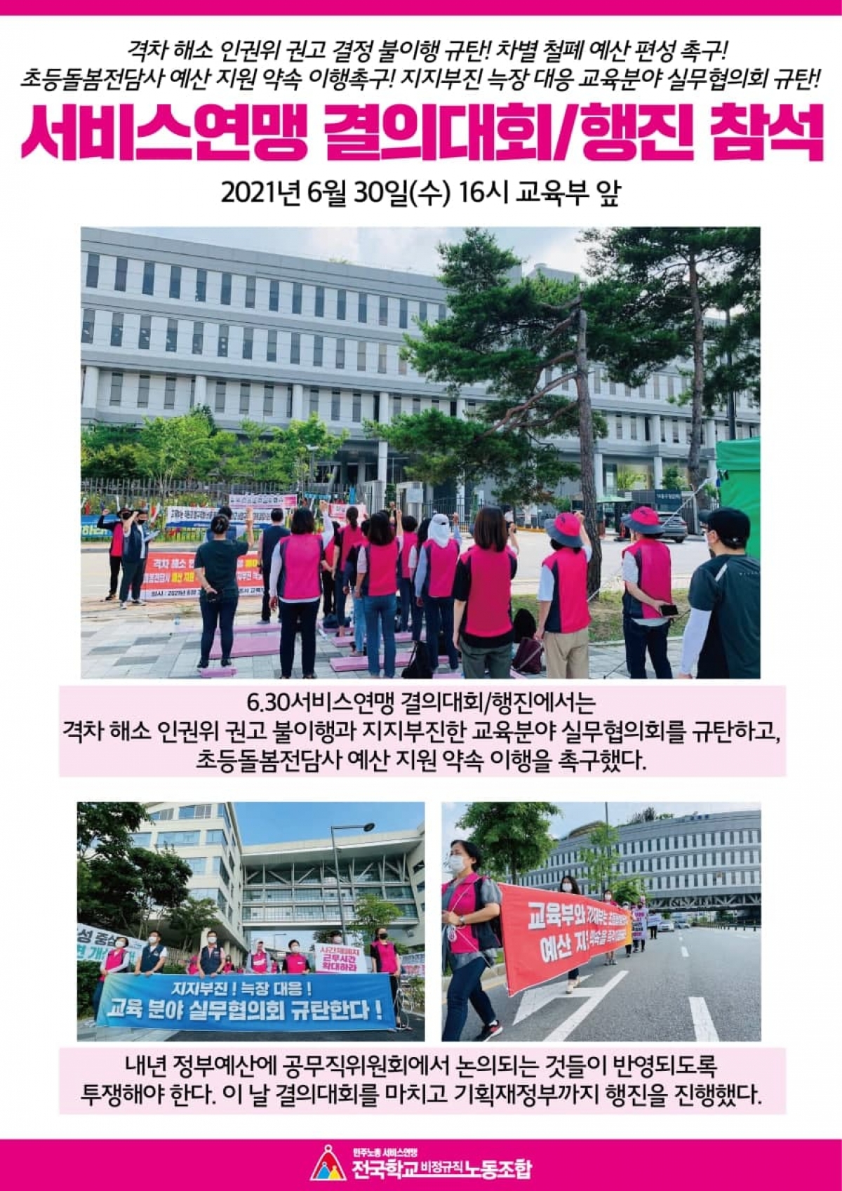 차별 철폐 예산을 편성하라! 서비스연맹 결의대회 열어