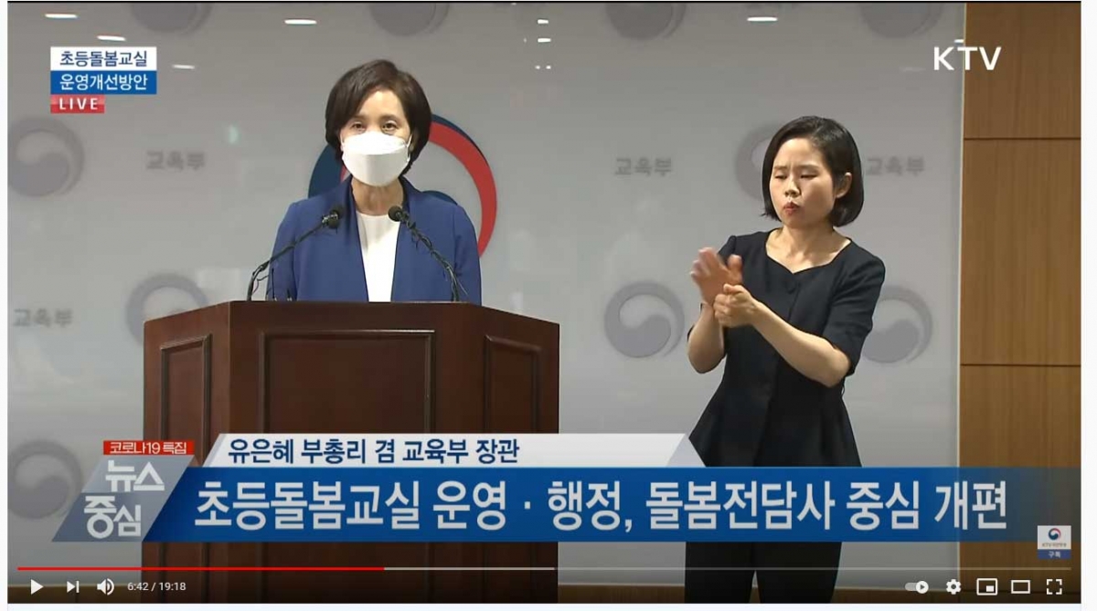 ▲교육부는 오늘 돌봄전담사의 적정 근무시간 확보, 돌봄전담사 중심의 행정 지원 체계 구축 등을 주요 내용으로 하는 초등돌봄교실 운영 개선 방안’을 발표하였다.