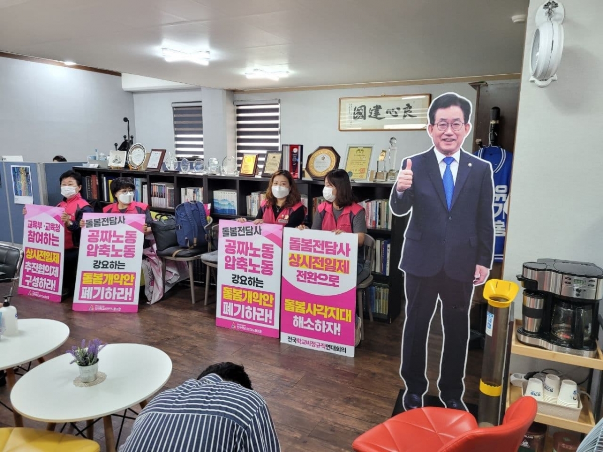 ▲지난 6월 24일 공적돌봄 강화를 위해 국회가 적극 나설것을 요구하며 국회 유기홍 교육위원장 사무실을 점거하고 면담을 요구했다.