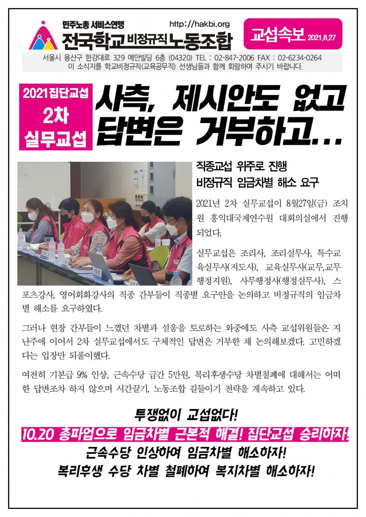 2차 실무교섭, 사측 제세안도 없고 답변은 거부하고...