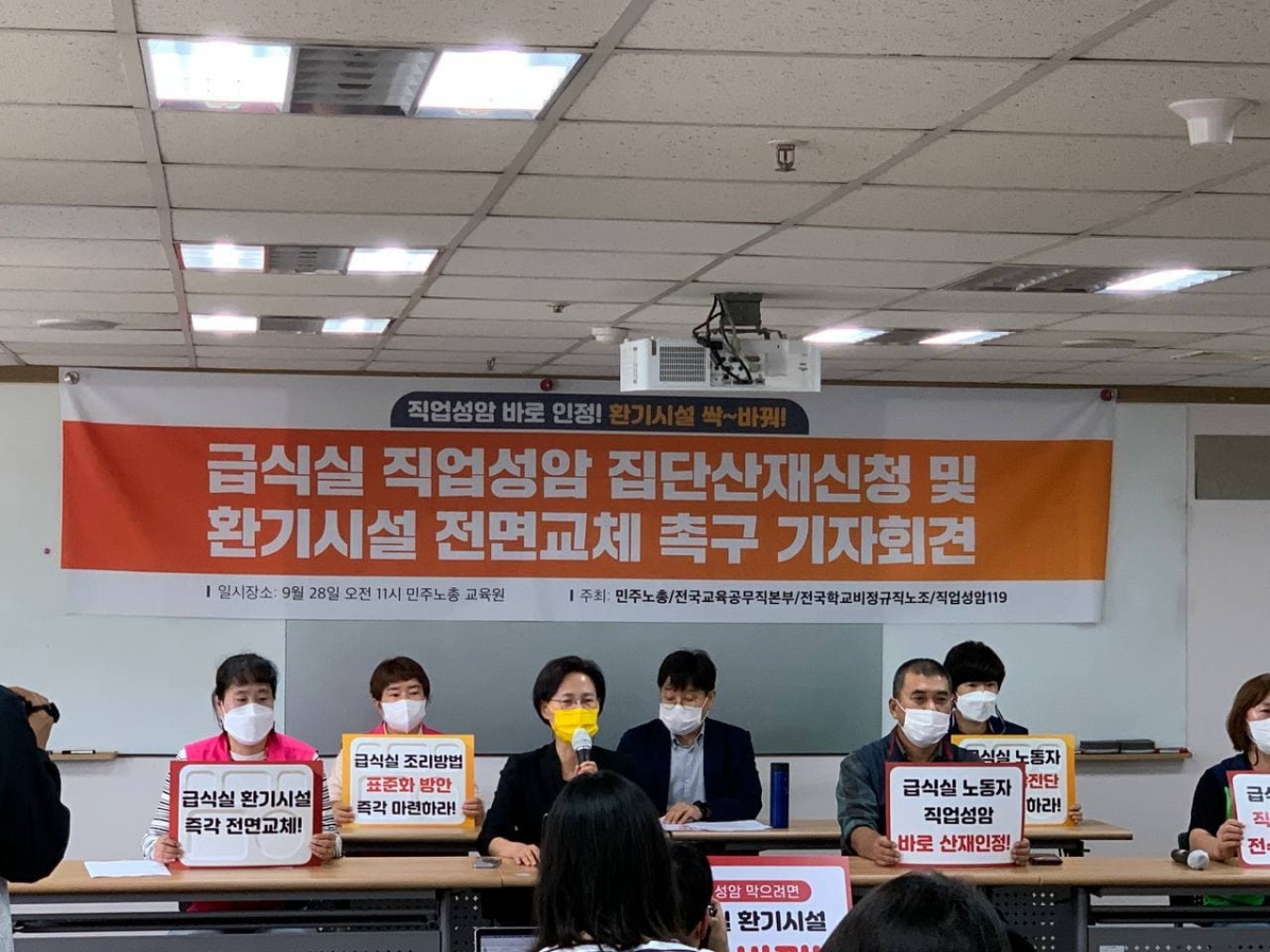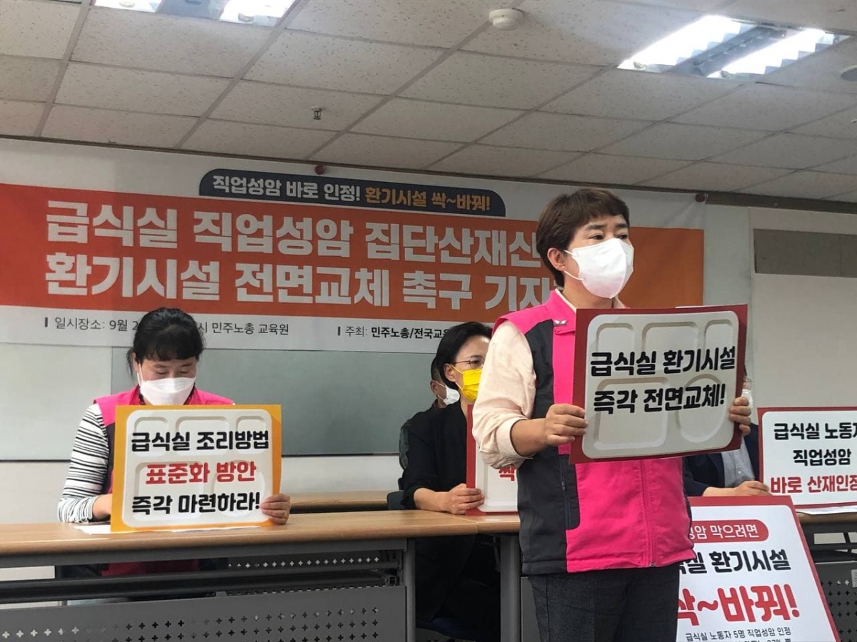 민주노총, 급식실 노동자 직업성암 집단산재신청 및 환기시설 전면교체 촉구 기자회견