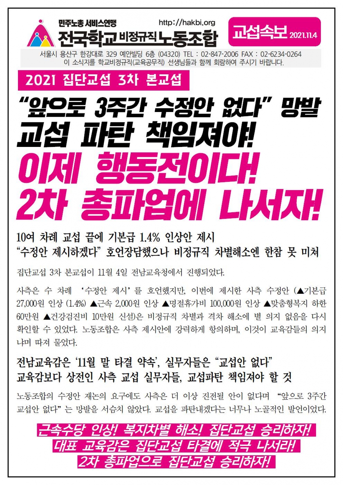 [교섭소식] 3차 본교섭 진행, "앞으로 수정안 없다"?