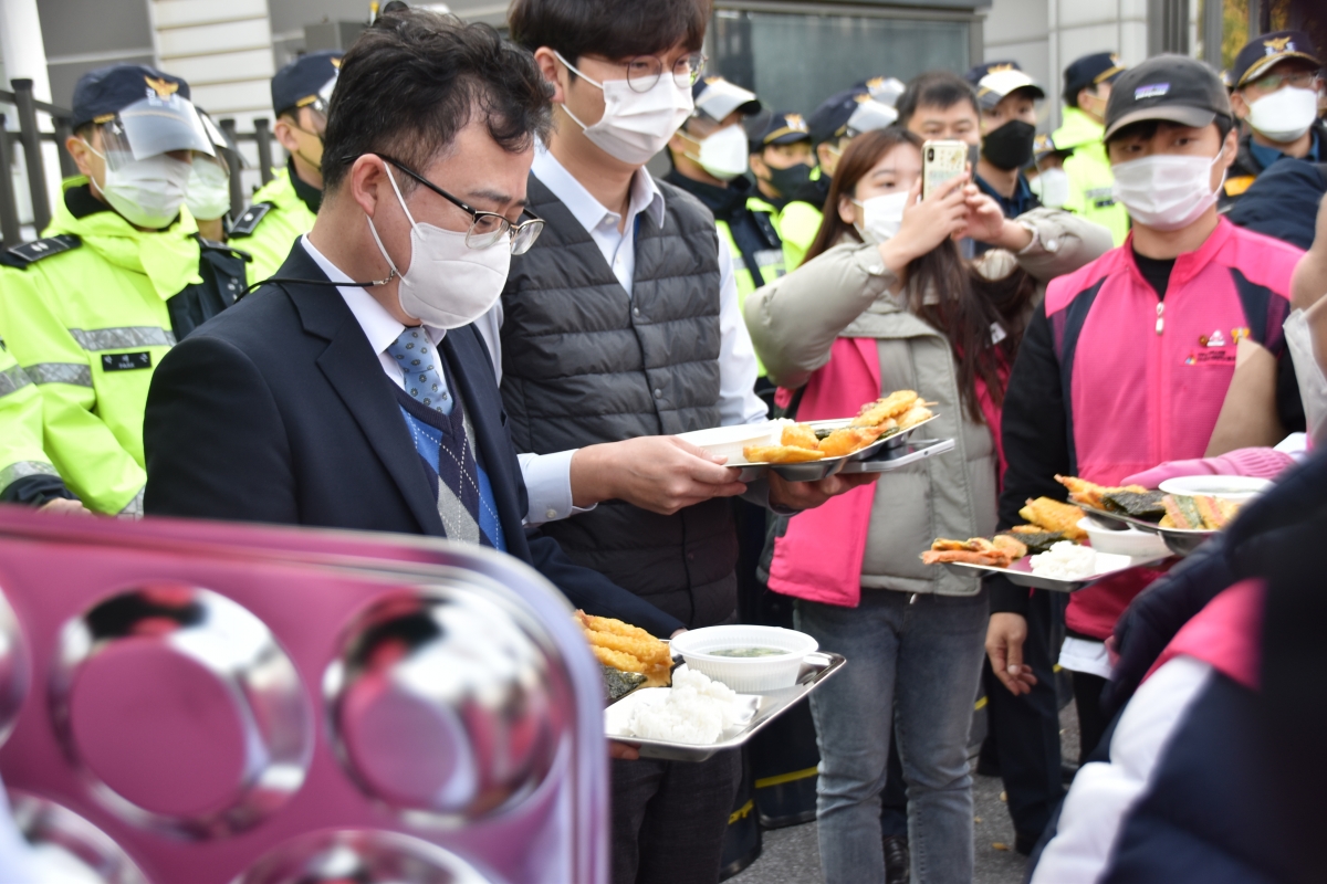 결의대회 후 교육부에 항의서한과 함께 또한 급식노동자들이 목숨걸고 만든 튀김, 전, 구이요리 등이 담긴 학교급식 식판과 항의서한을 교육부에 직접 전달 하는 퍼포먼스를 진행했다. 교육부가 적극 나서서 학교 급식실 문제 해결할 것을 강력하게 요구했다.