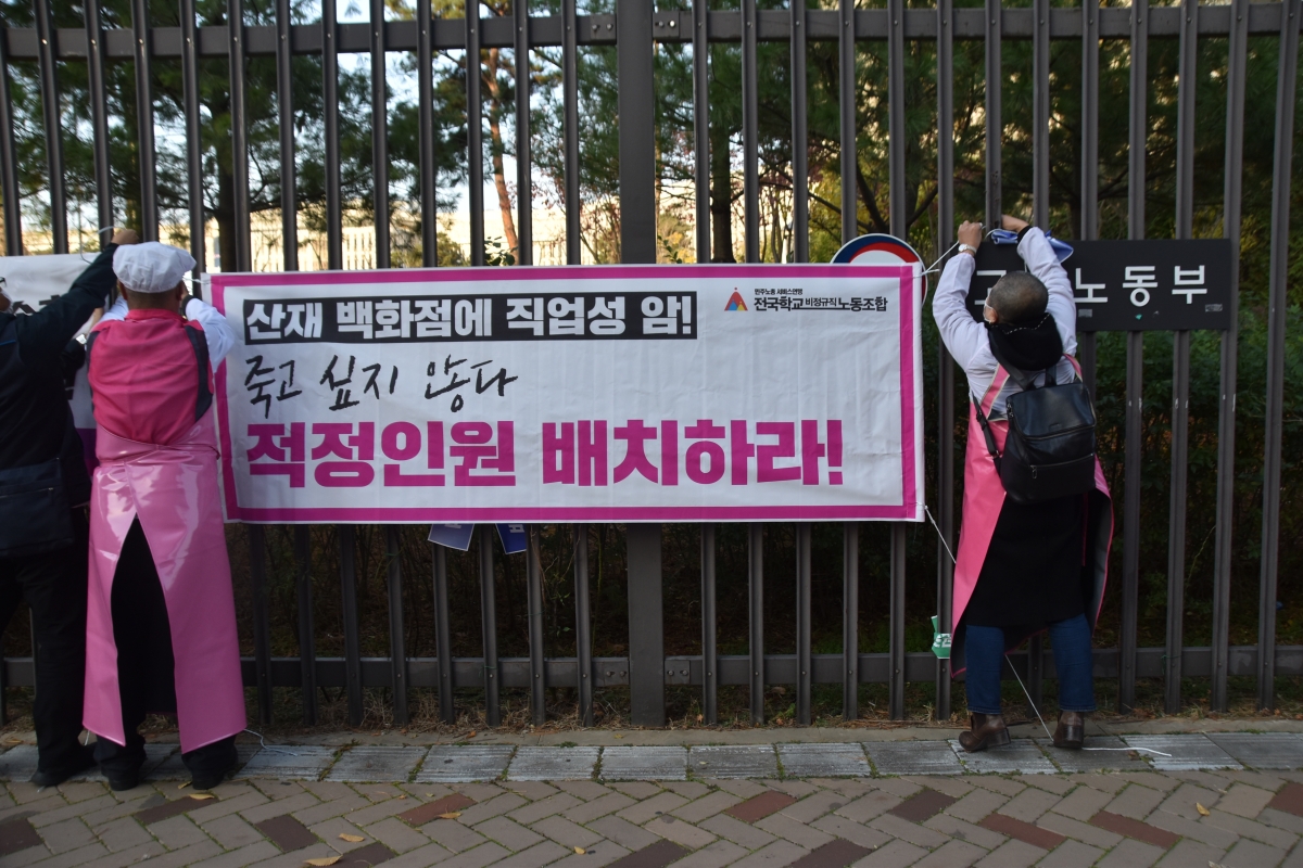이후 산업안전 주무부서인 노동부까지 행진하고, 노동부도 교육부와 함께 학교급식실의 노동안전을 위해 적극 나설 것을 요구했다.