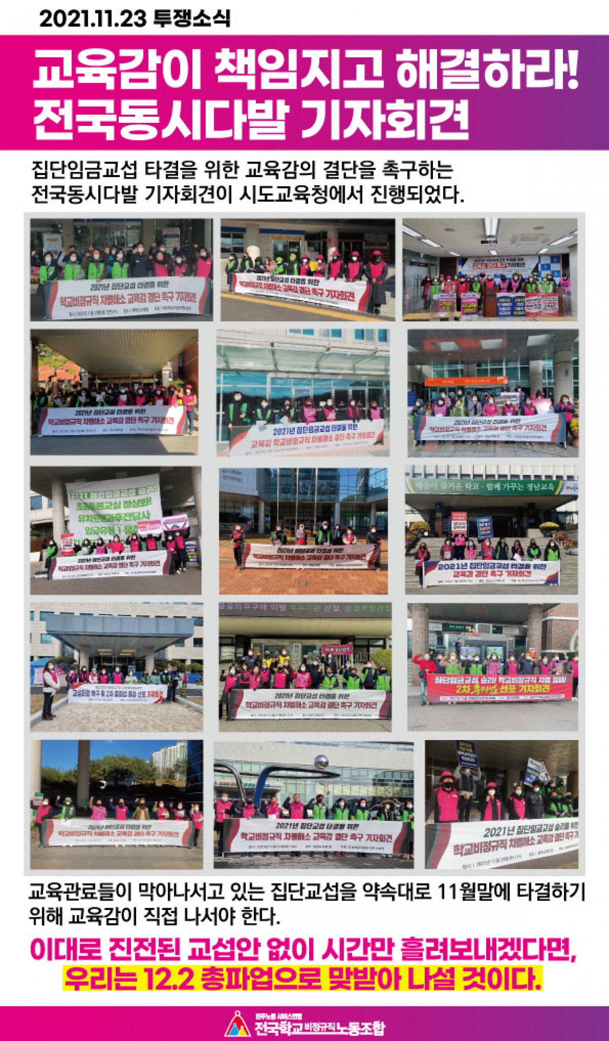 교육감이 책임지고 해결하라! 전국동시다발 기자회견 개최