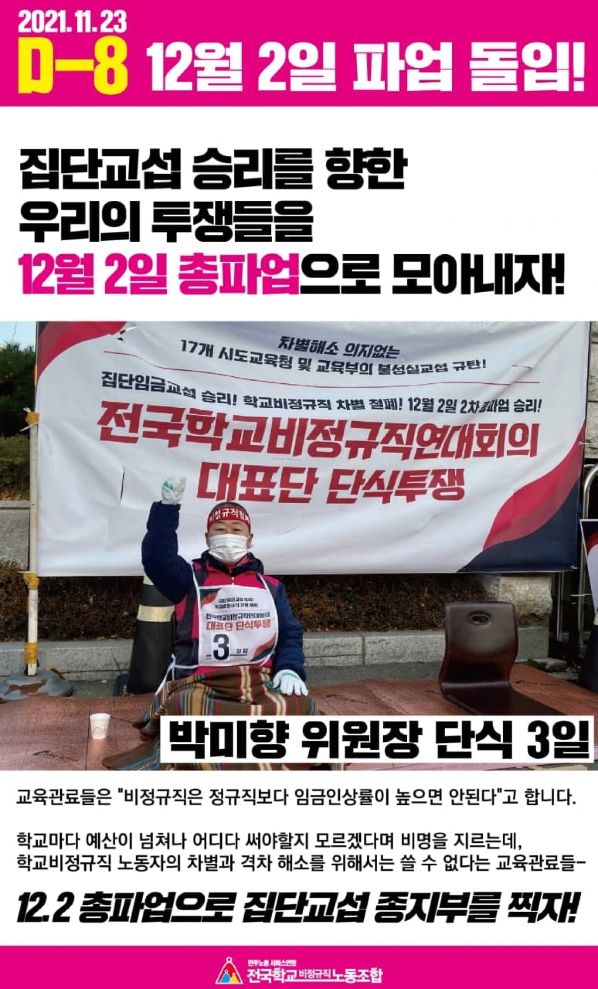 12월 2일 파업 돌입! 집단교섭 승리를 향한 우리의 투쟁들을 12월 2일 총파업으로 모아내자!