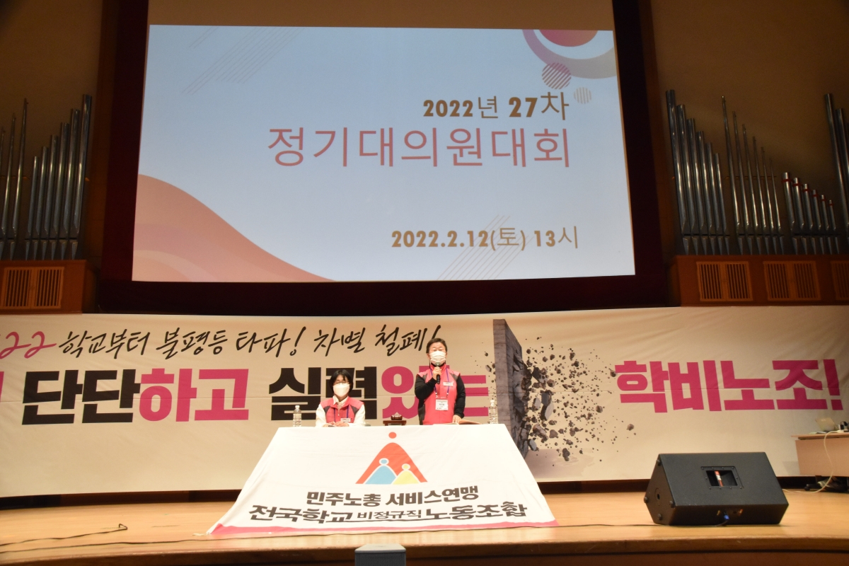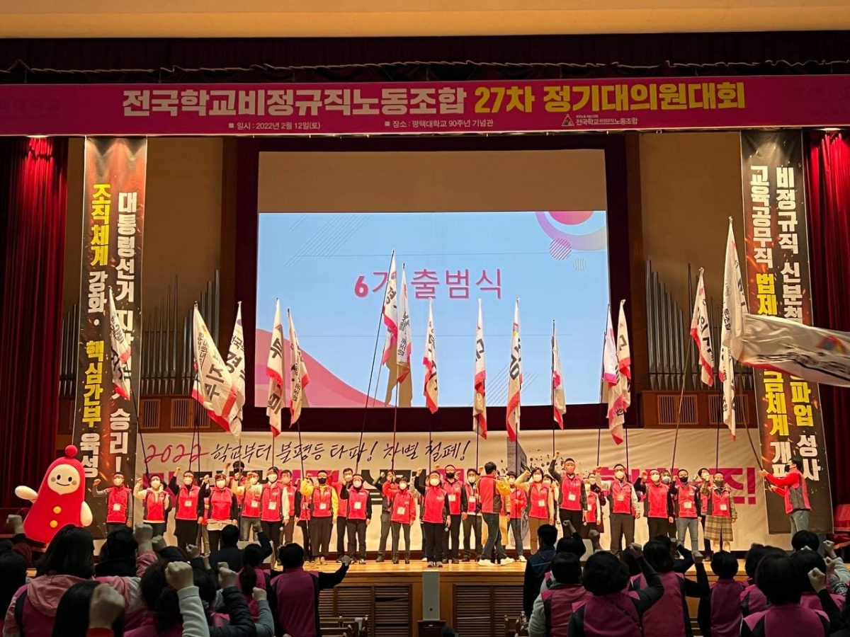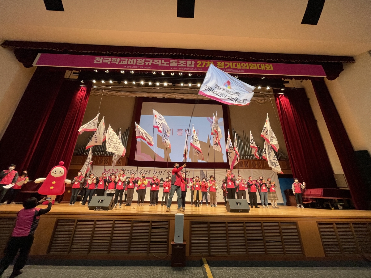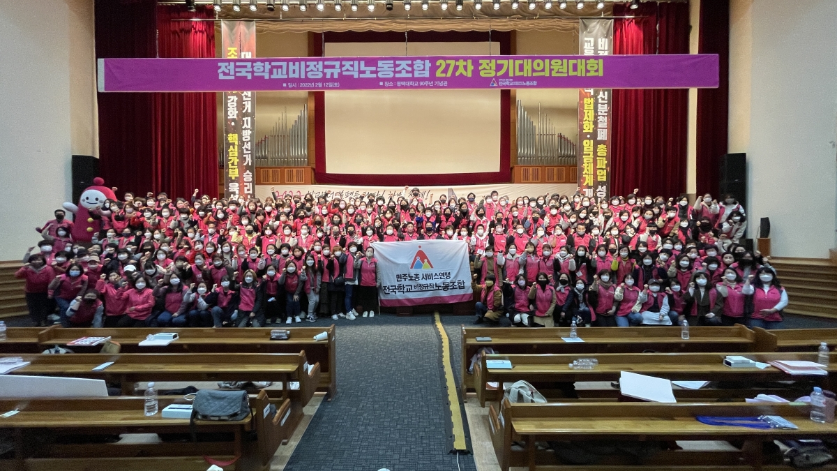 전국학교비정규직노동조합은 지난 12일, 평택대학교 90주년 기념관에서 '27차 정기대의원대회'를 열고 2022년 사업계획 등을 논의하고 결의하였다.